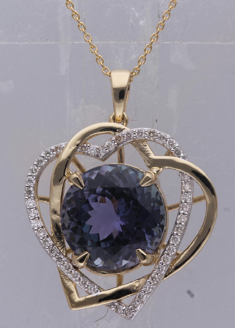 14K YELLOW GOLD NON HEAT TANZANITE & WHITE DIAMOND FASHION PENDANT