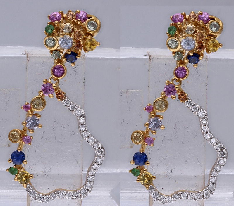 14K YELLOW GOLD MULTI SAPPHIRE & WHITE DIAMOND FASHION EARRING
