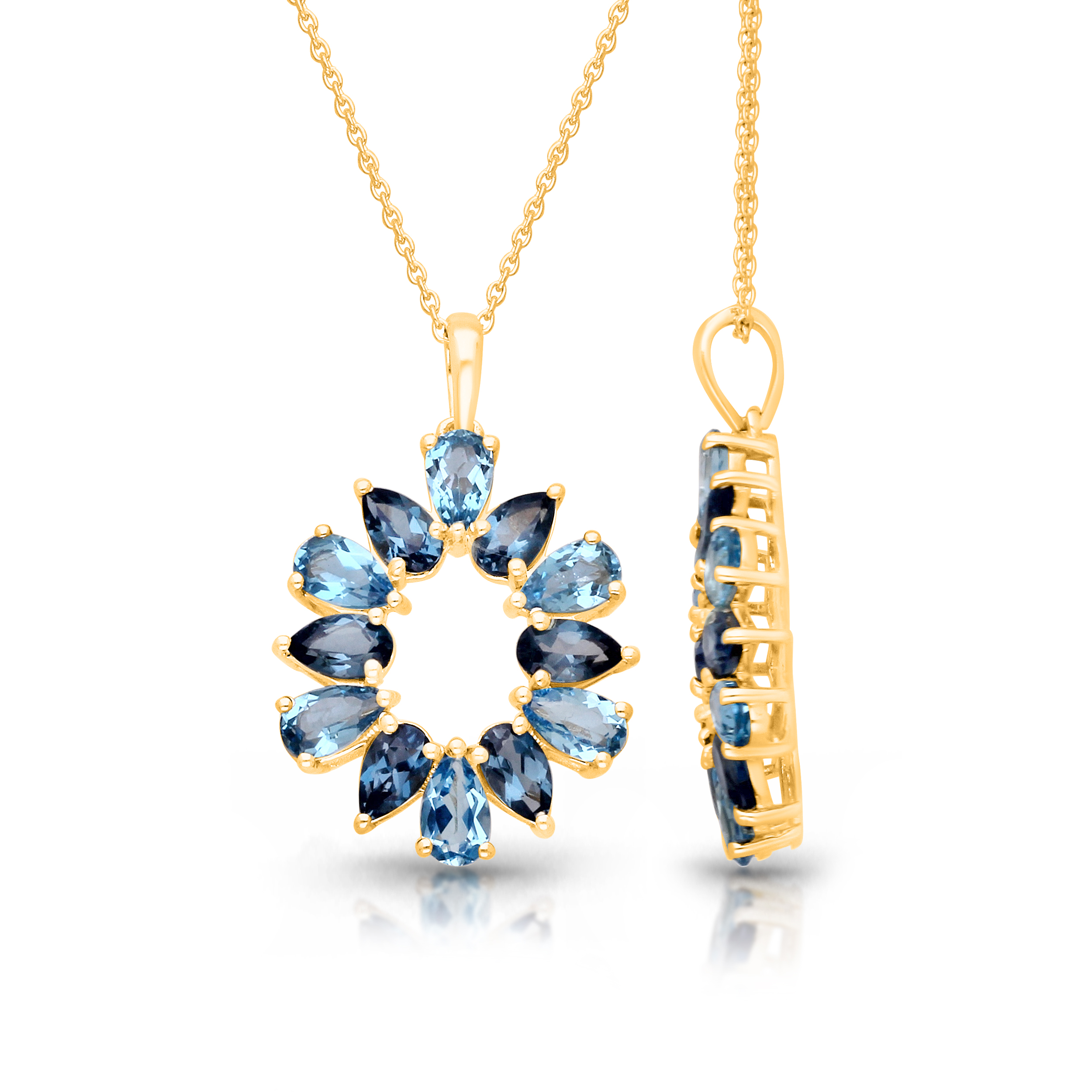 14K YELLOW GOLD BLUE TOPAZ AND LONDAN BLUE FASHION PENDANT