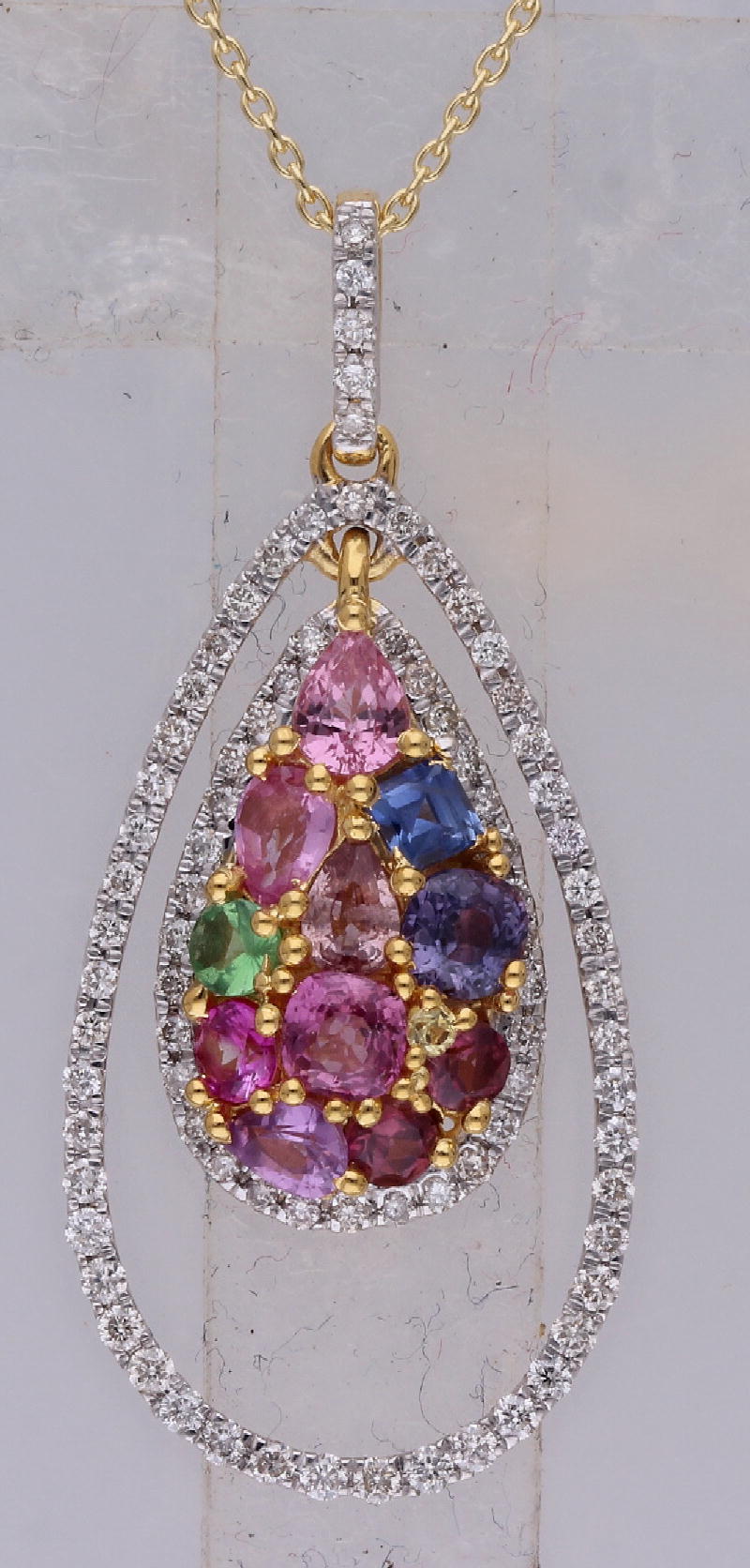 14K YELLOW GOLD MULTI SAPPHIRE & WHITE DIAMOND FASHION PENDANT