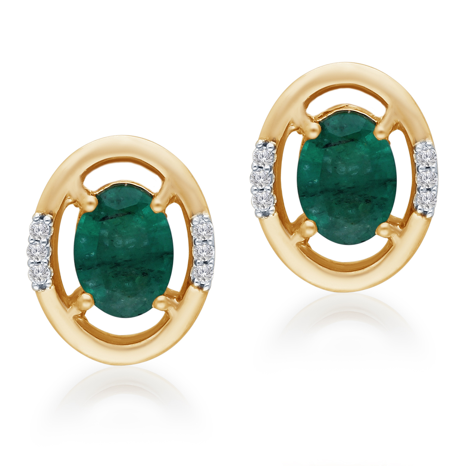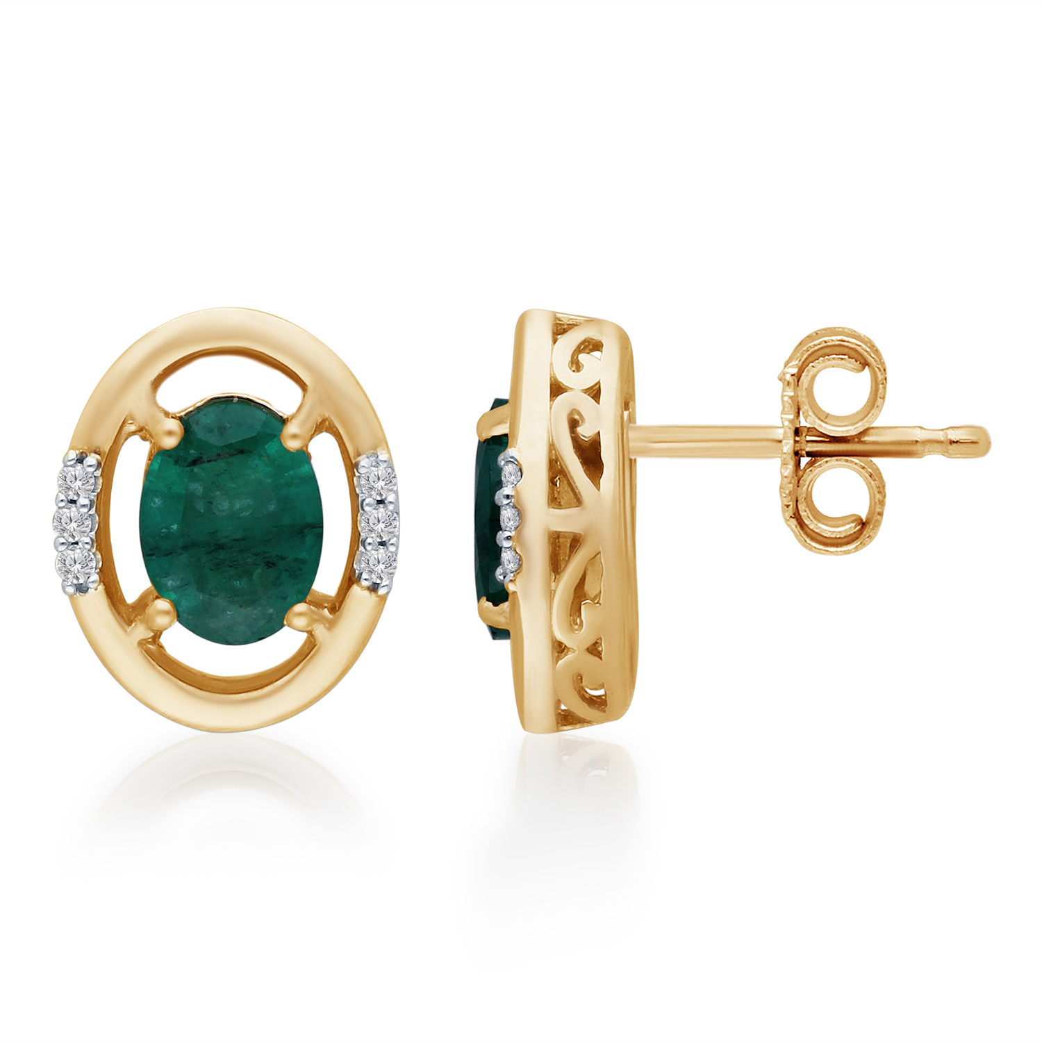 14K YELLOW GOLD EMERALD & WHITE DIAMOND