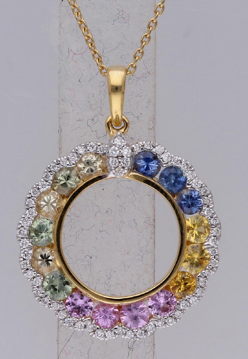 14K YELLOW GOLD MULTI SAPPHIRE & WHITE DIAMOND FASHION PENDANT