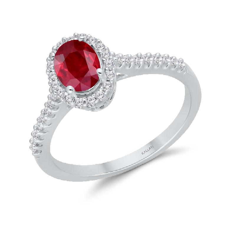 WHITE GOLD OVAL RUBY DIAMOND FASHION RIN