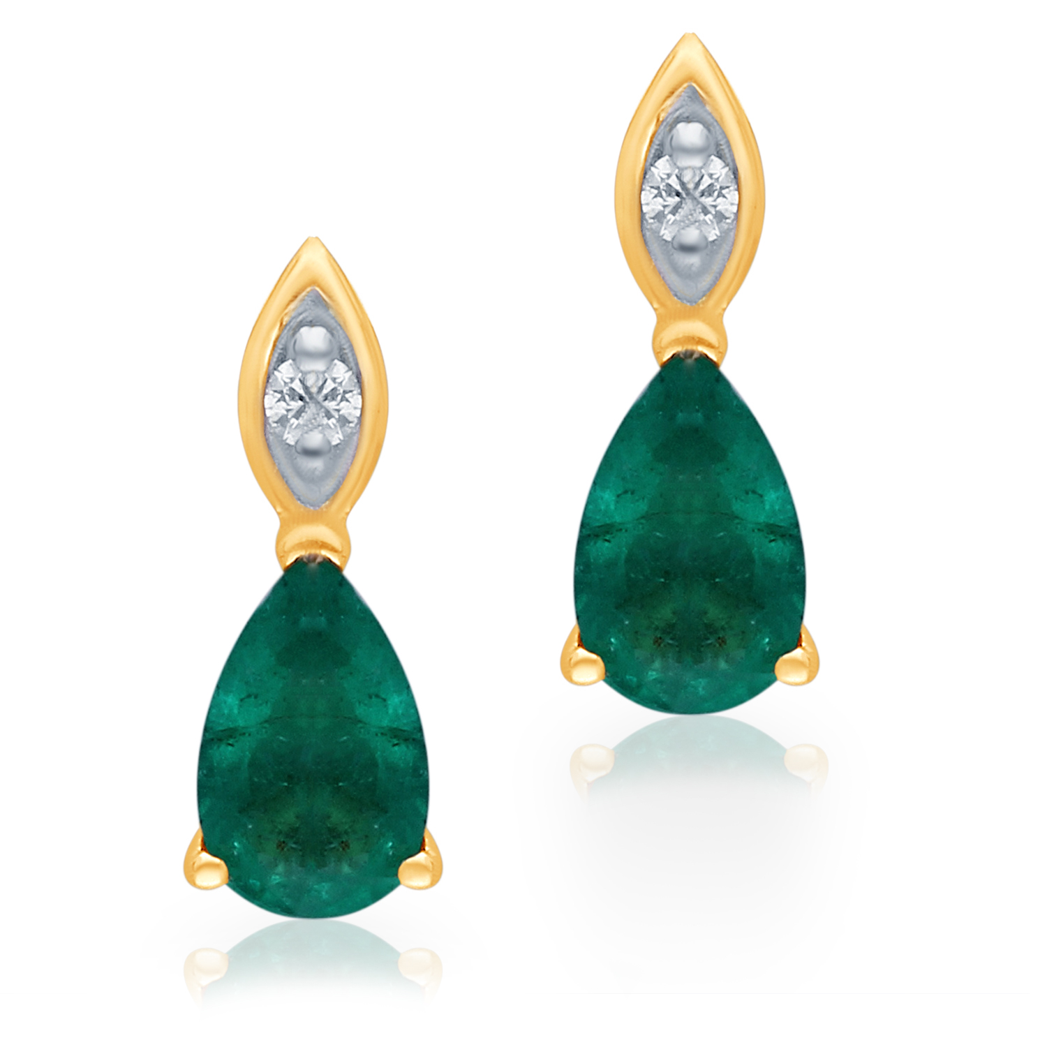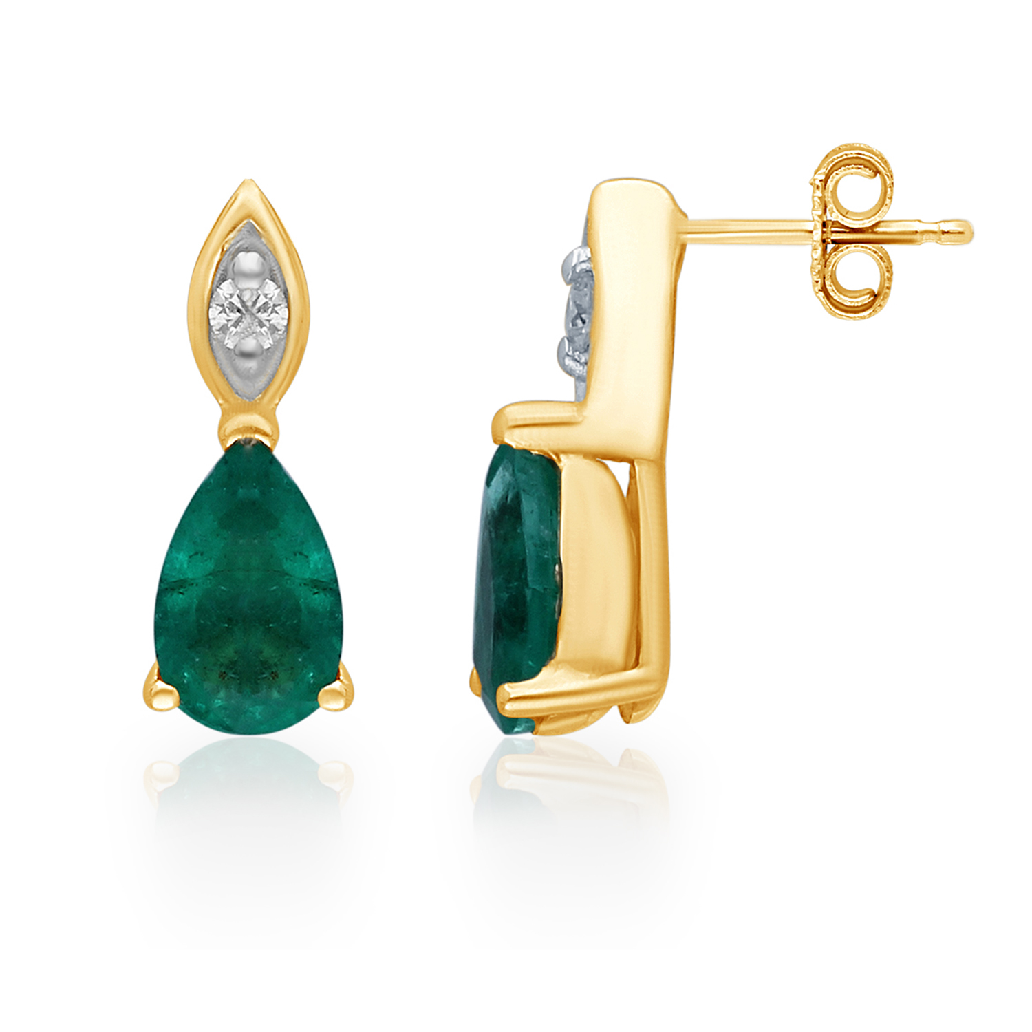 14K YELLOW GOLD EMERALD & WHITE DIAMOND