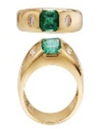 14K YELLOW GOLD EMERALD WITH WHITE DIMAOND FASHION RING