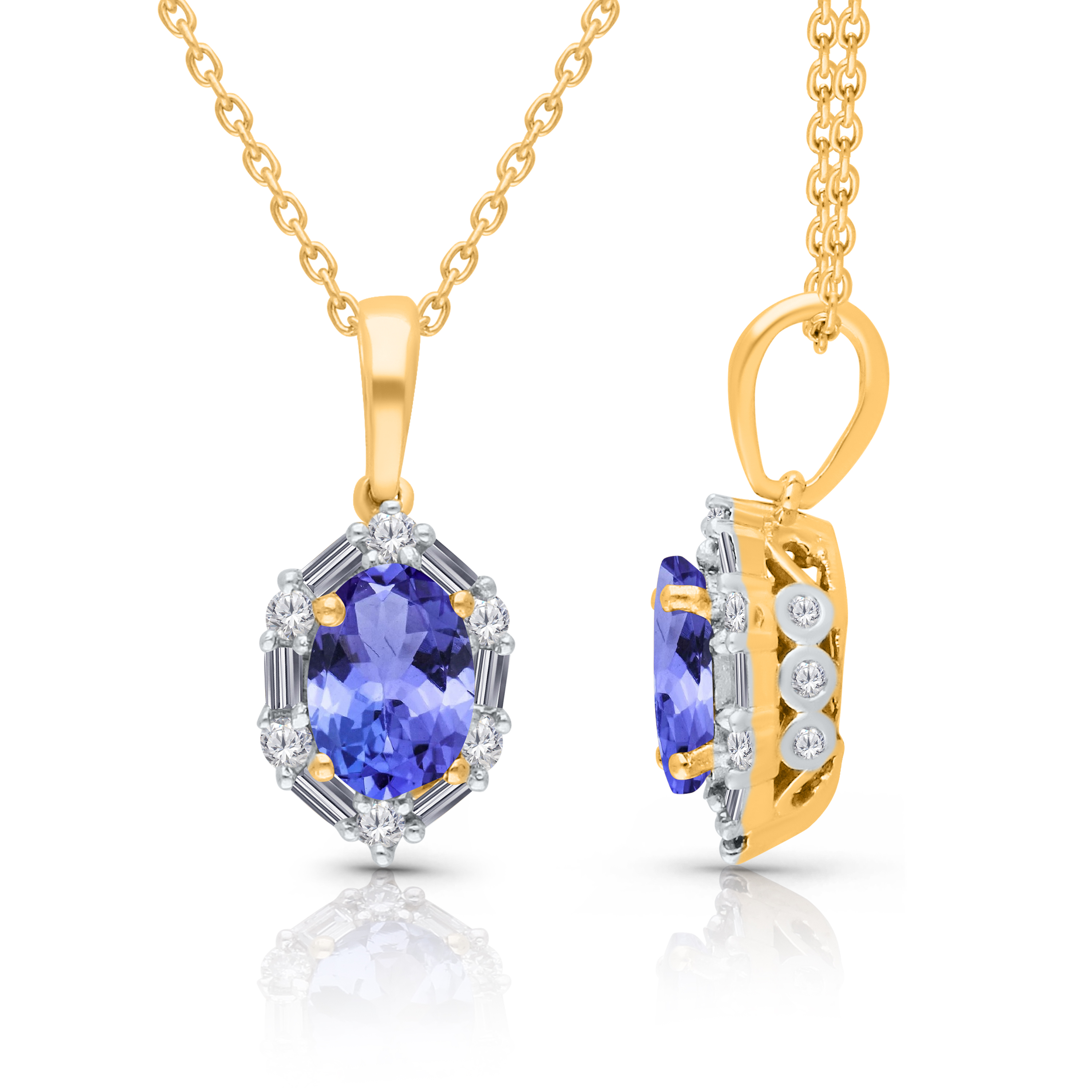 14K YELLOW GOLD TANZANITE & WHITE DIAMOND FASHION PENDANT