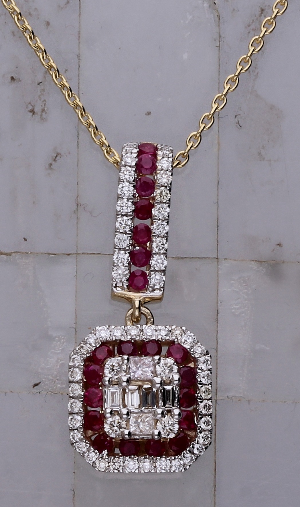 14K YELLOW GOLD RUBY WITH WHITE DIAMOND FASHION PENDANT