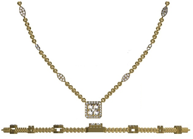 14K YELLOW GOLD WHITE DIAMOND FASHION NECKLACE