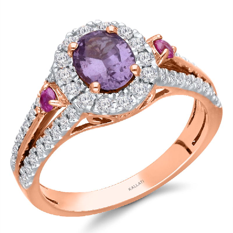 14K ROSE GOLD MULTI SAPPHIRE & WHITE DIA