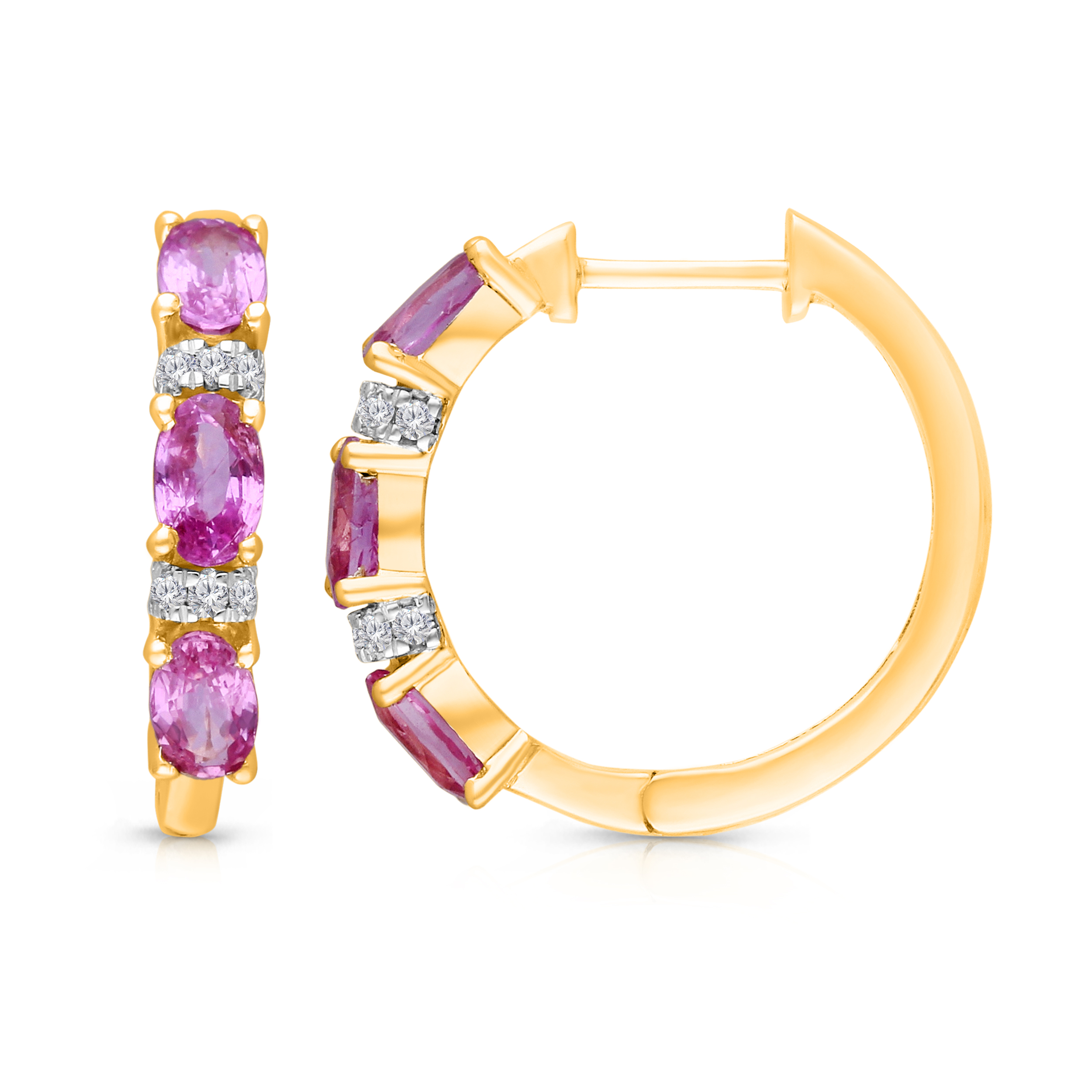 14K YELLOW GOLD PINK SAPPHIRE WITH WHITE DIAMOND FASHION EARRING