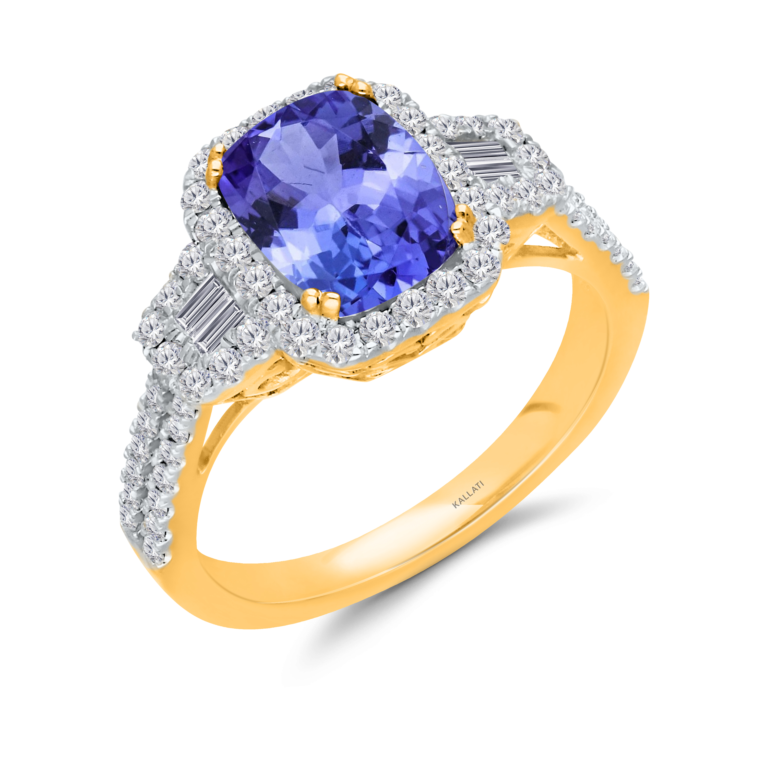14K YELLOW GOLD TANZANITE & WHITE DIAMOND FASHION RING