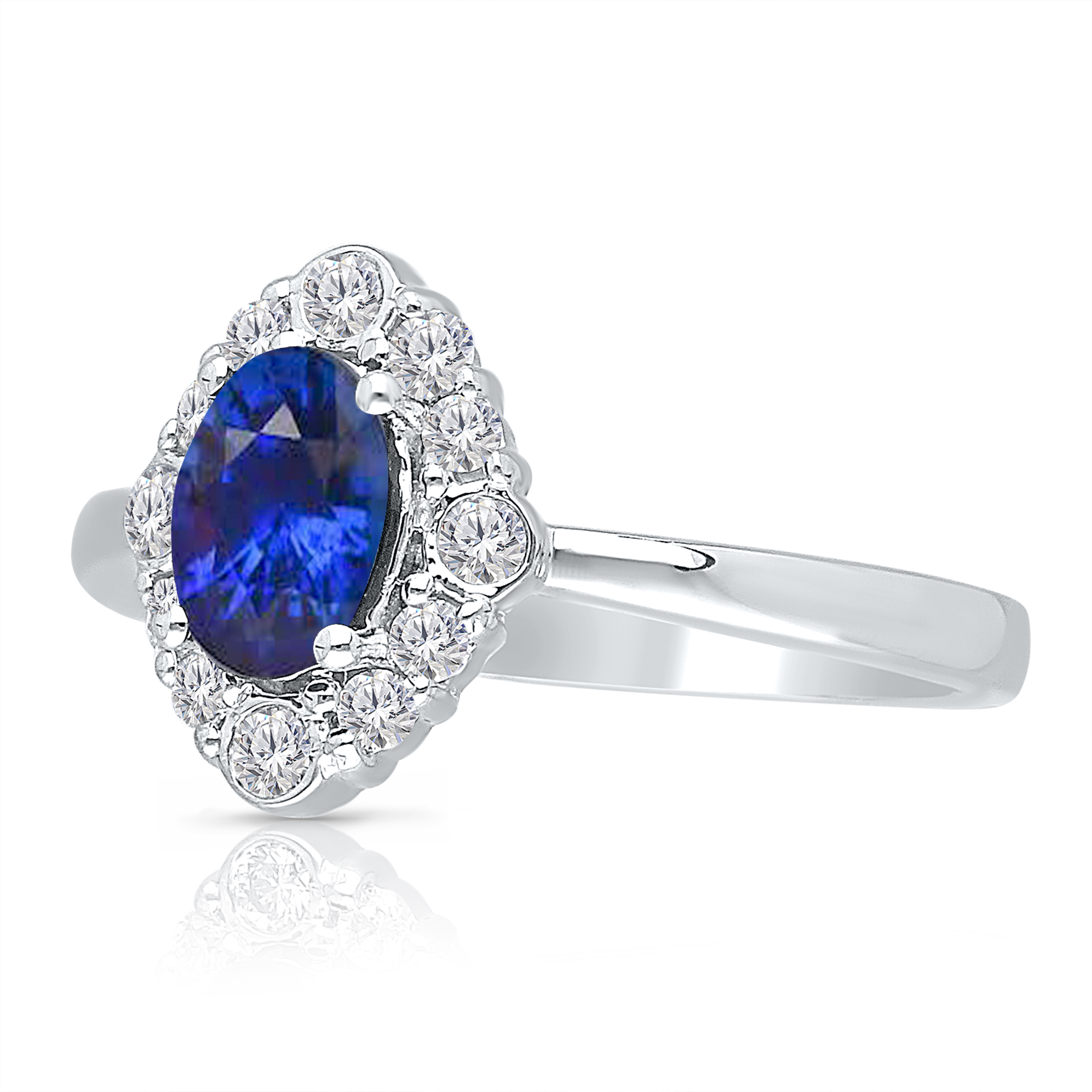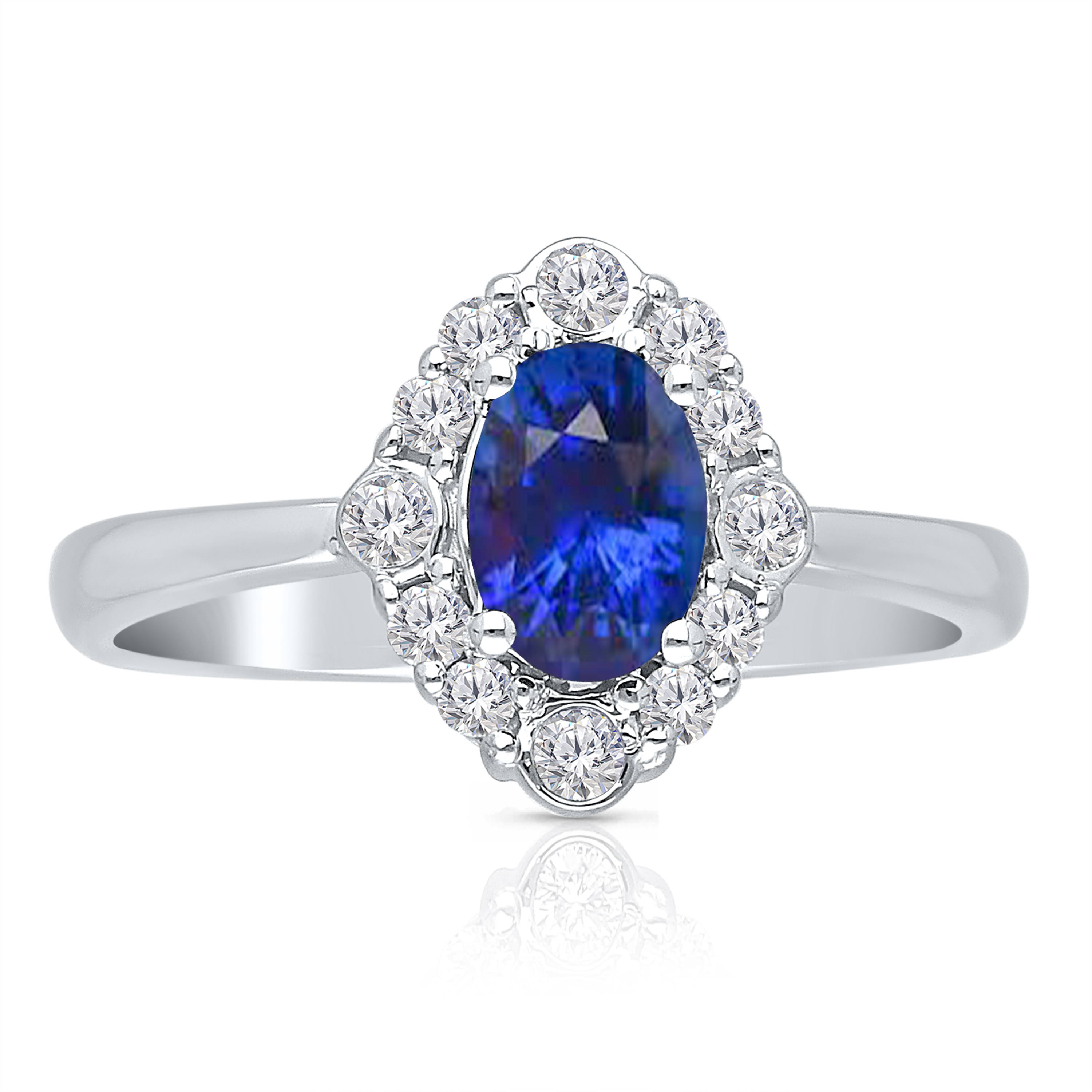 14K WHITE GOLD WITH WHITE DIIA & BLUE SAPPHIRE RING