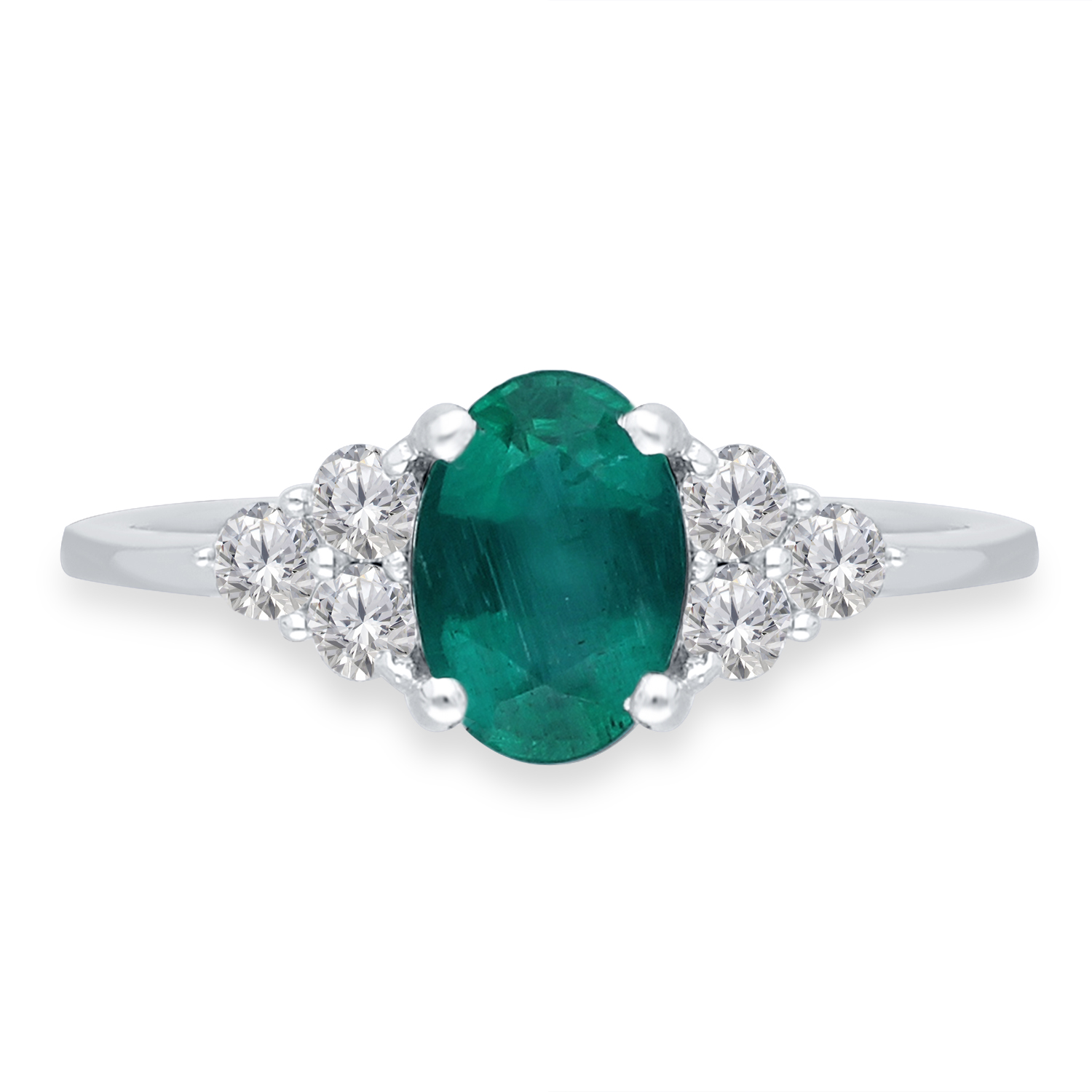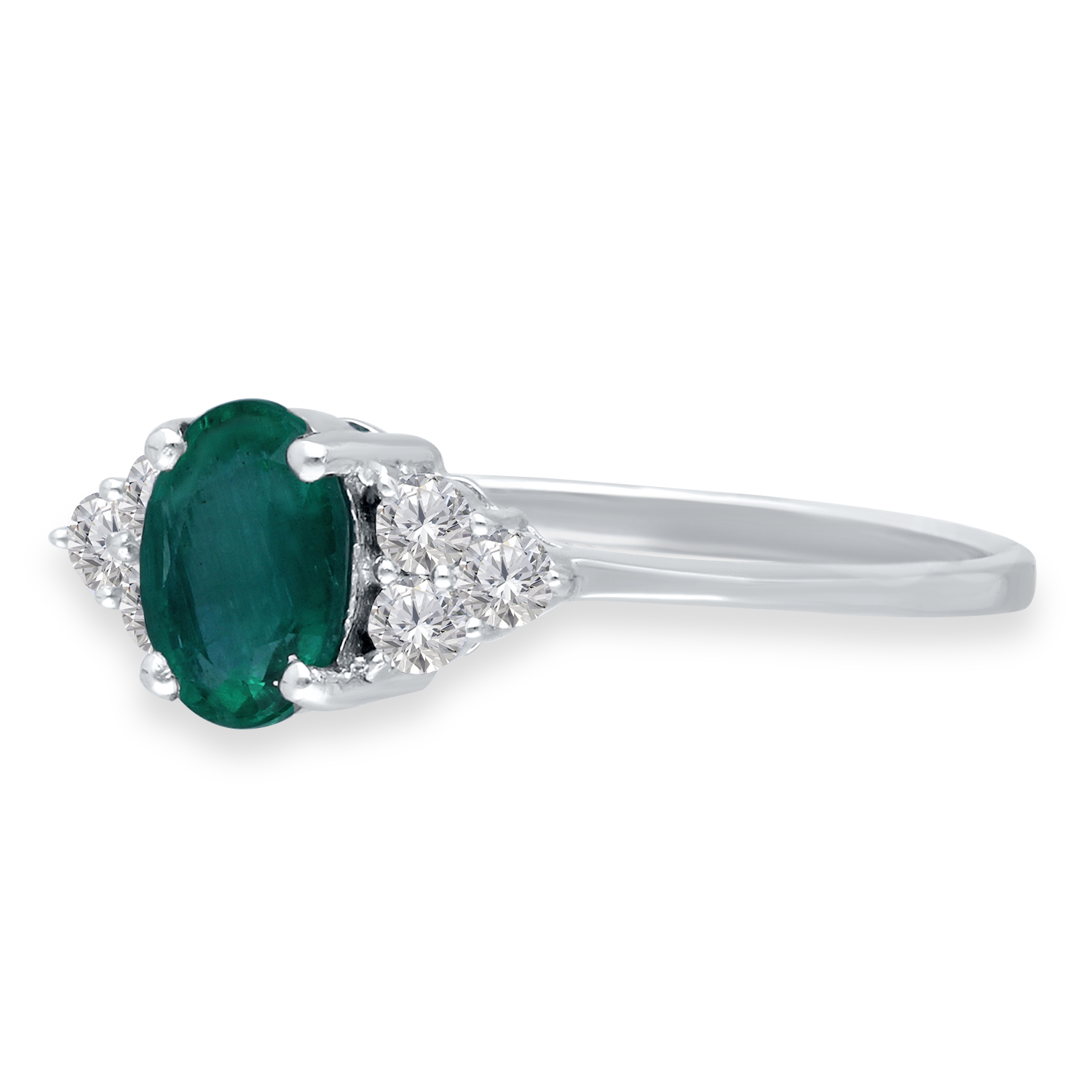 14K WHITE GOLD EMERALD & WHITE DIAMOND R
