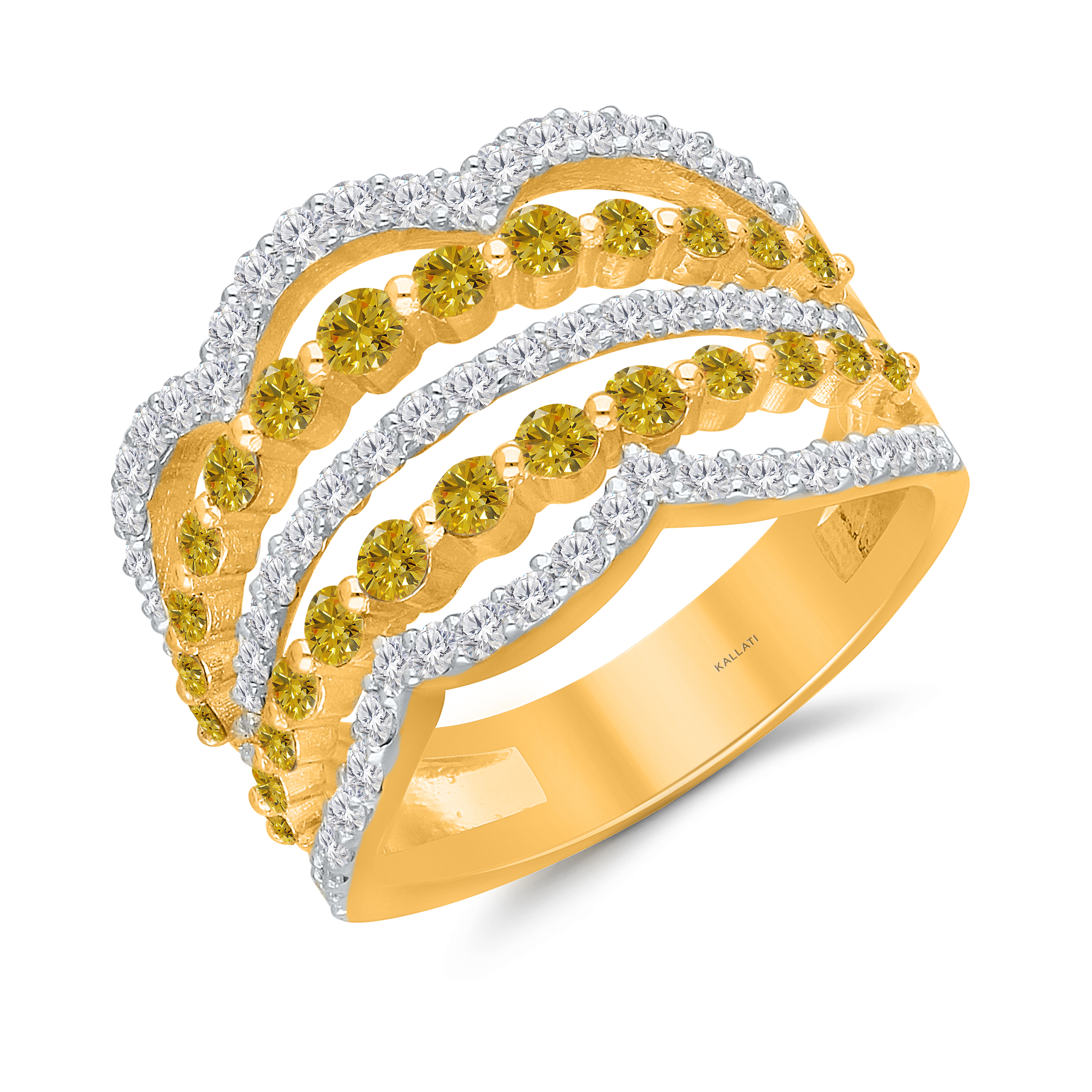 14K YELLOW GOLD YELLOW FANCY & WHITE DIAMOND FASHION RING