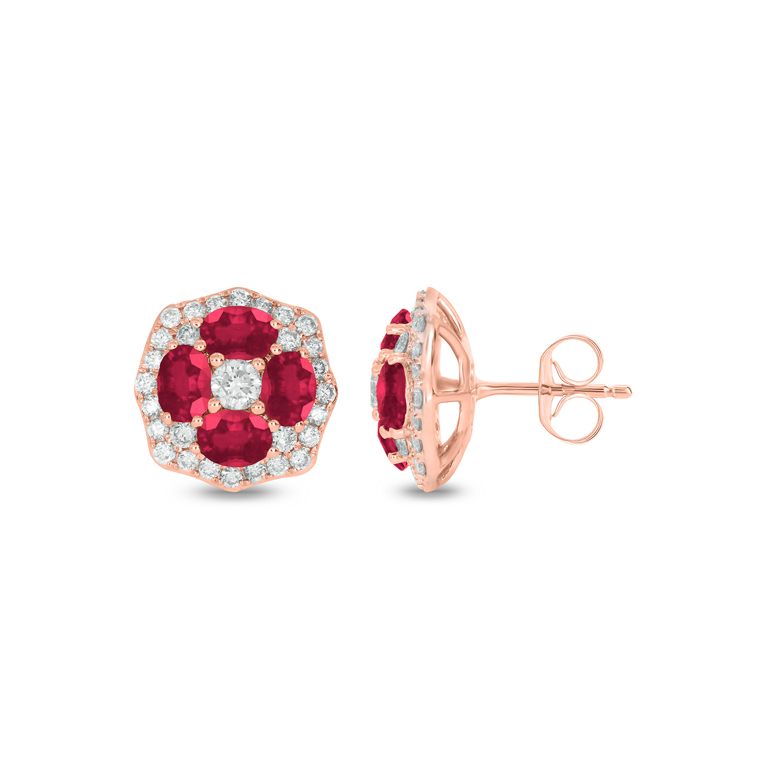 14K DIA / RUBY EARRING; YELLOW GOLD