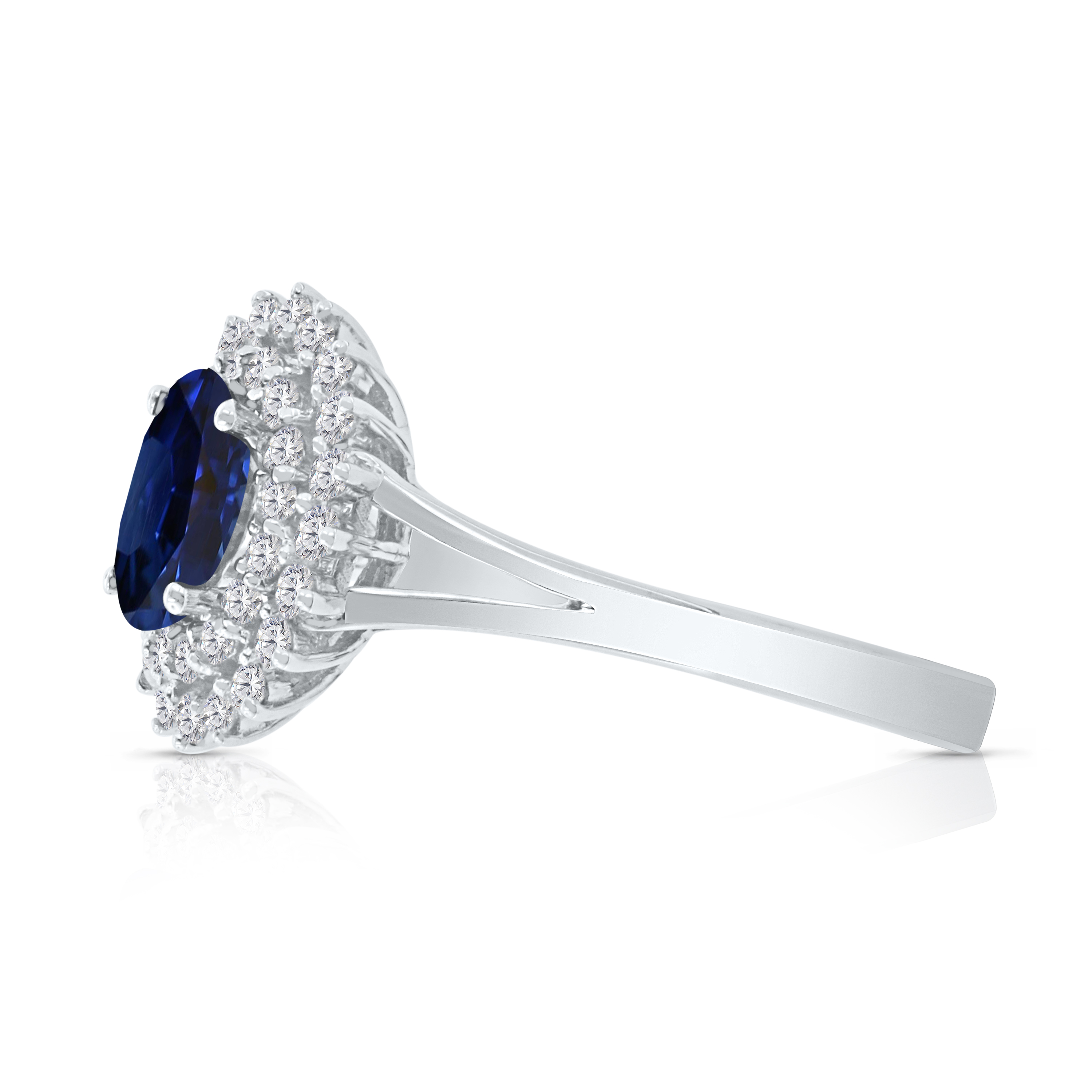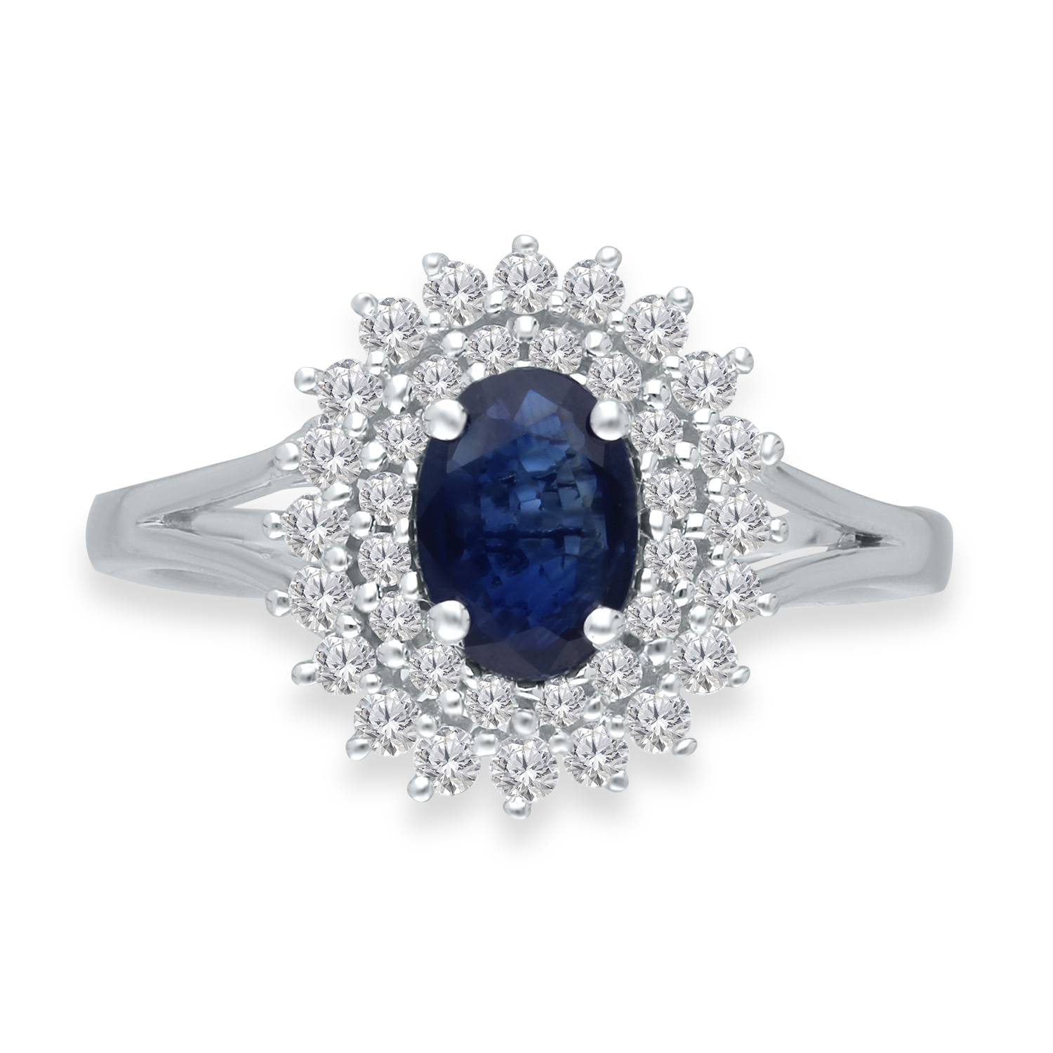WHITE GOLD SI OVEL SAPPHIRE DIAMOND RING
