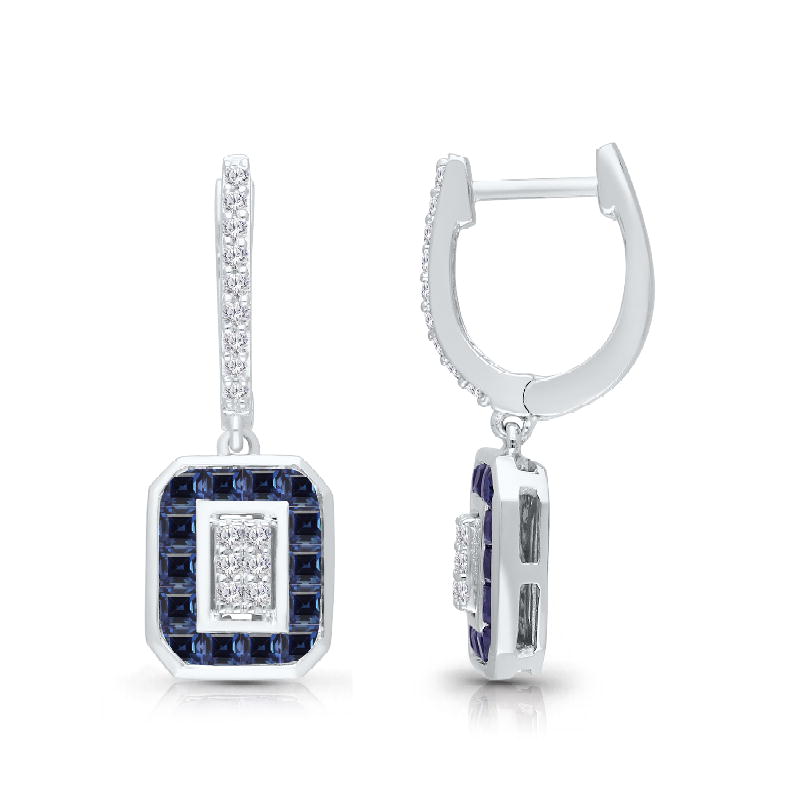 14K WHITE GOLD SAPPHIRE & WHITE DIAMOND FASHION EARRING