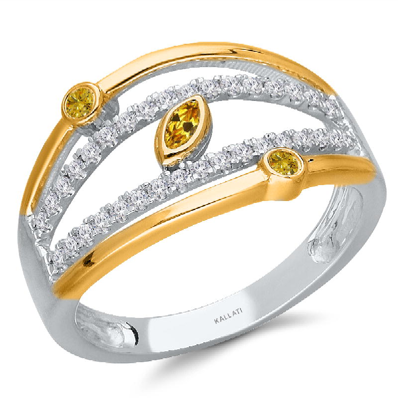 14 K WHITE GOLD YELLOW & WHITE DIAMOND R