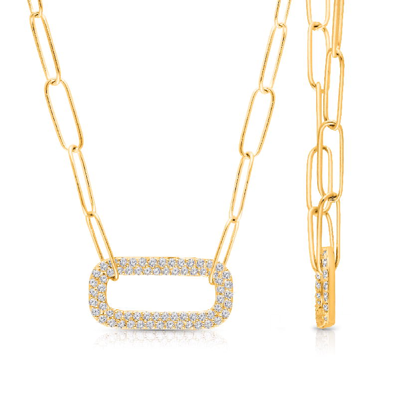 14K YELLOW GOLD WHITE DIAMOND PAPER CLIP PENDANT