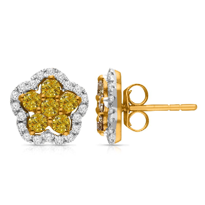 14K YELLOW GOLD YELLOW FANCY & WHITE DIAMOND FASHION EARRING