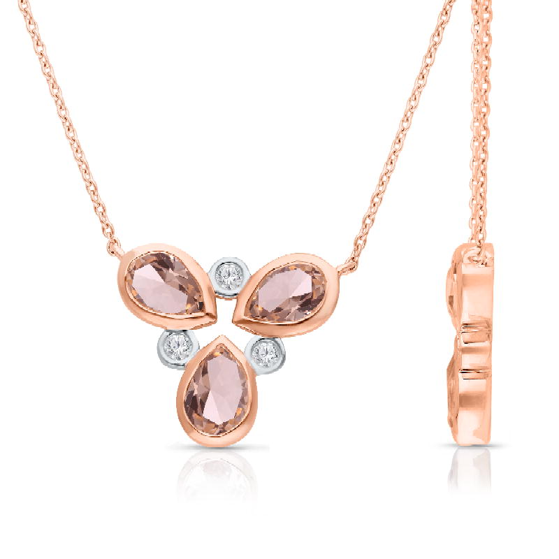 14K ROSE GOLD MORGANITE & WHITE DIAMOND FASHION NECKLACE