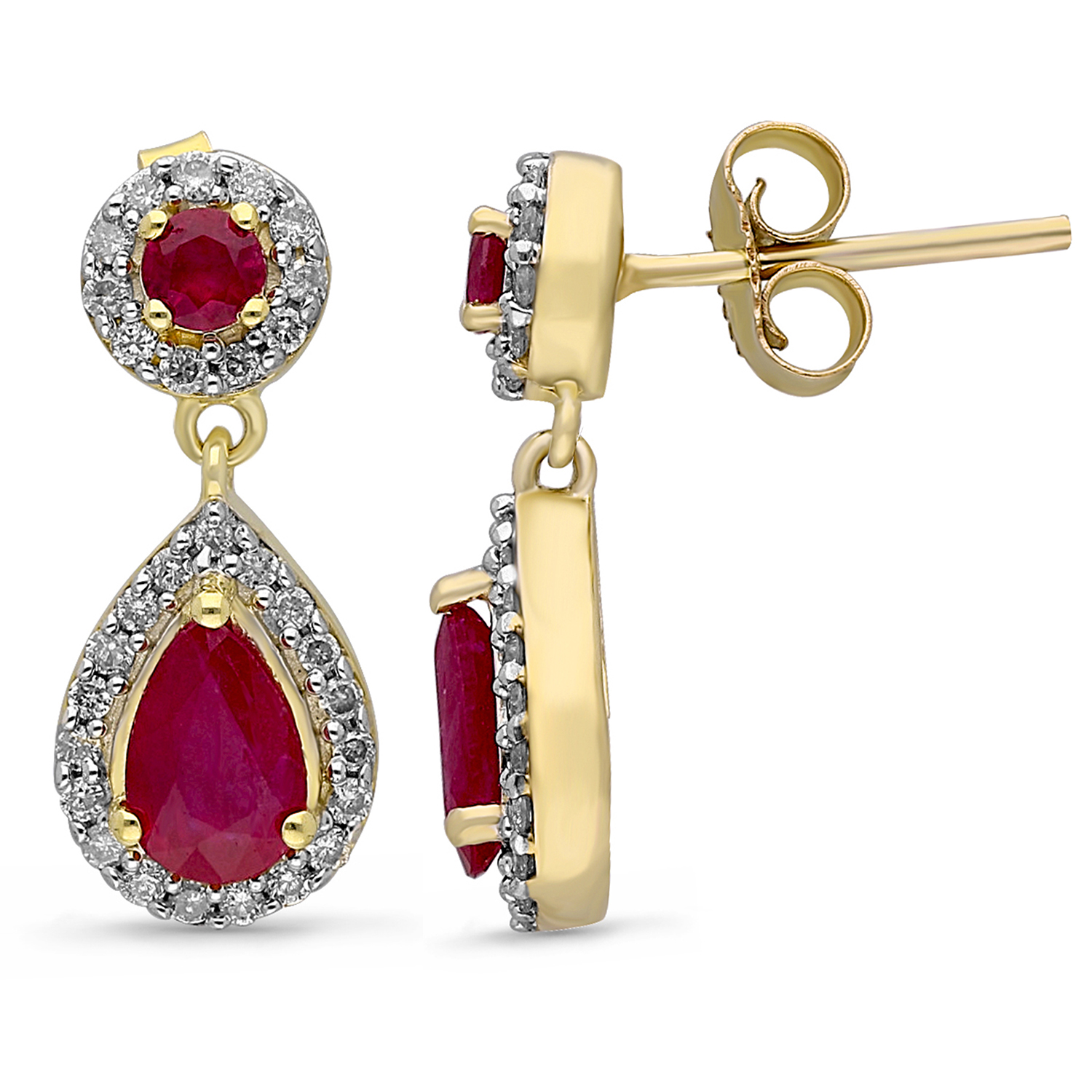 14K YELLOW GOLD SI RUBY DIAMOND EARRING