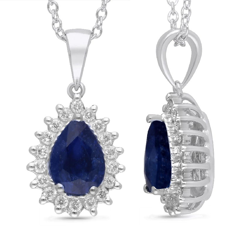 14K WHITE GOLD CEYLON SAPPHIRE & PENDANT