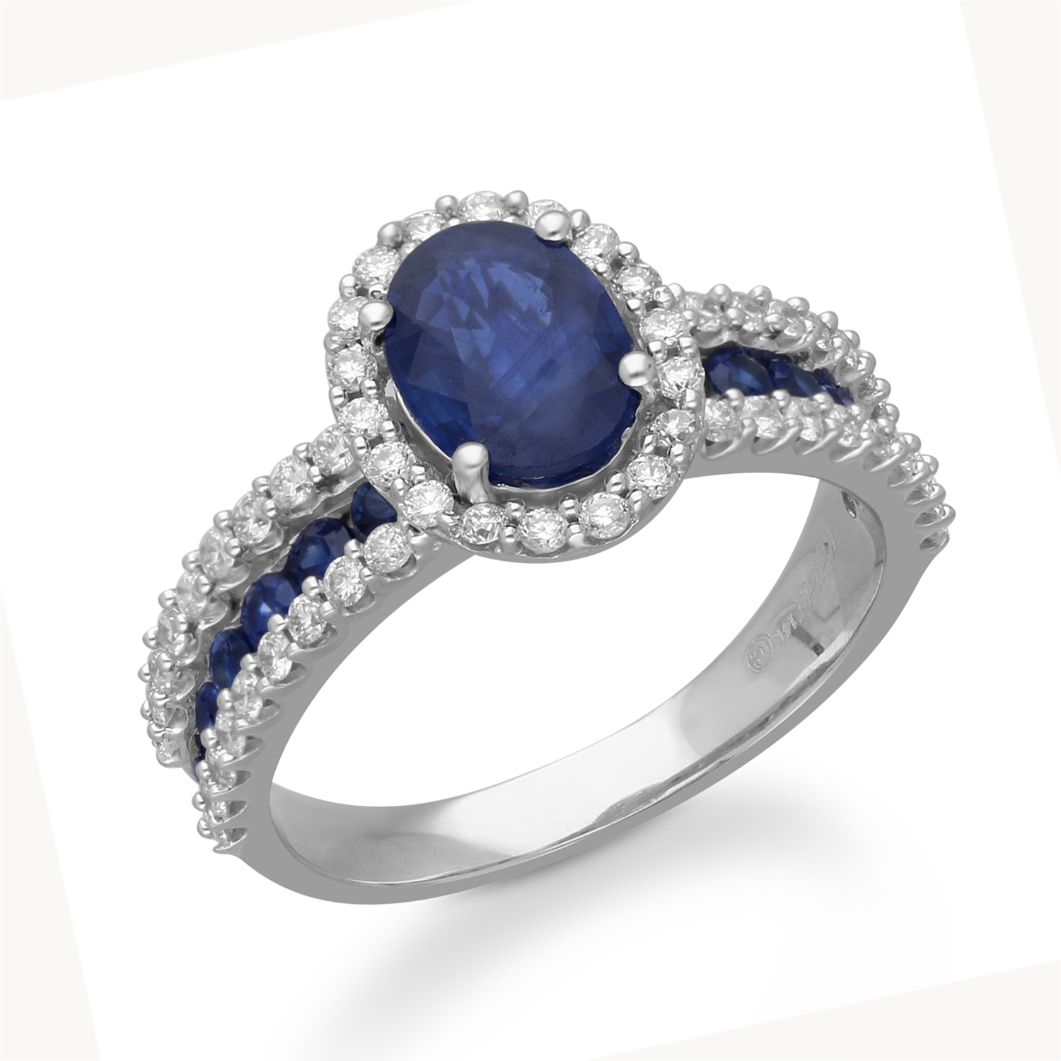 14K WHITE GOLD SAPPHIRE & WHITE DIAMOND