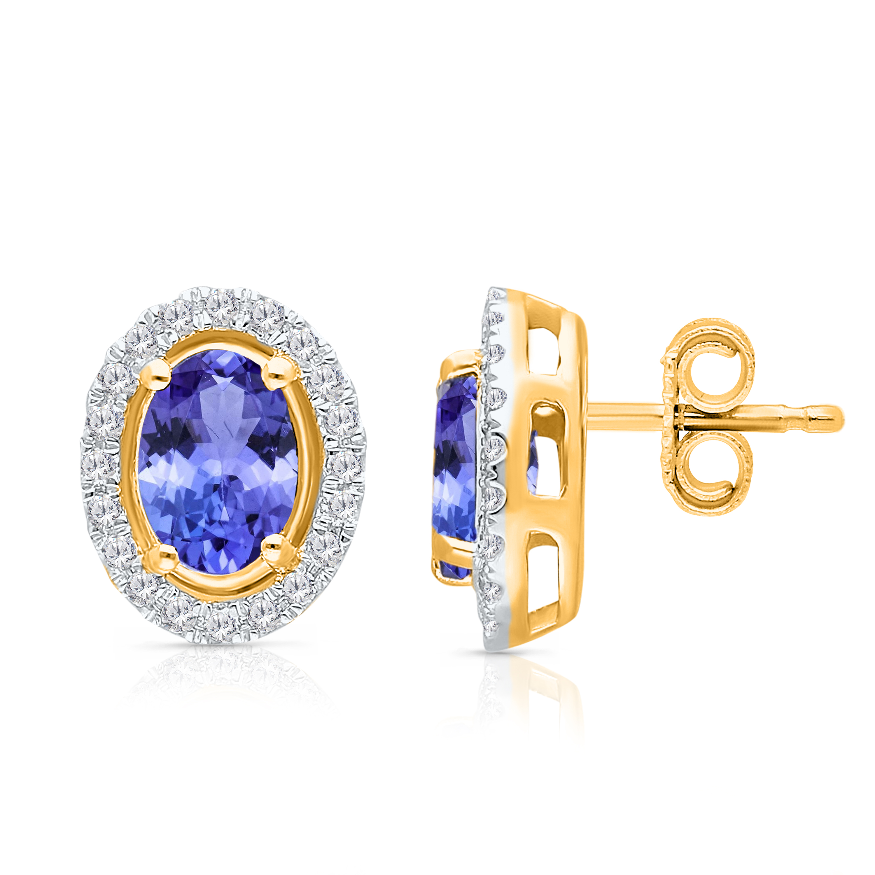 14K YELLOW GOLD TANZANITE WITH WHITE DIAMOND FASHION EARRING