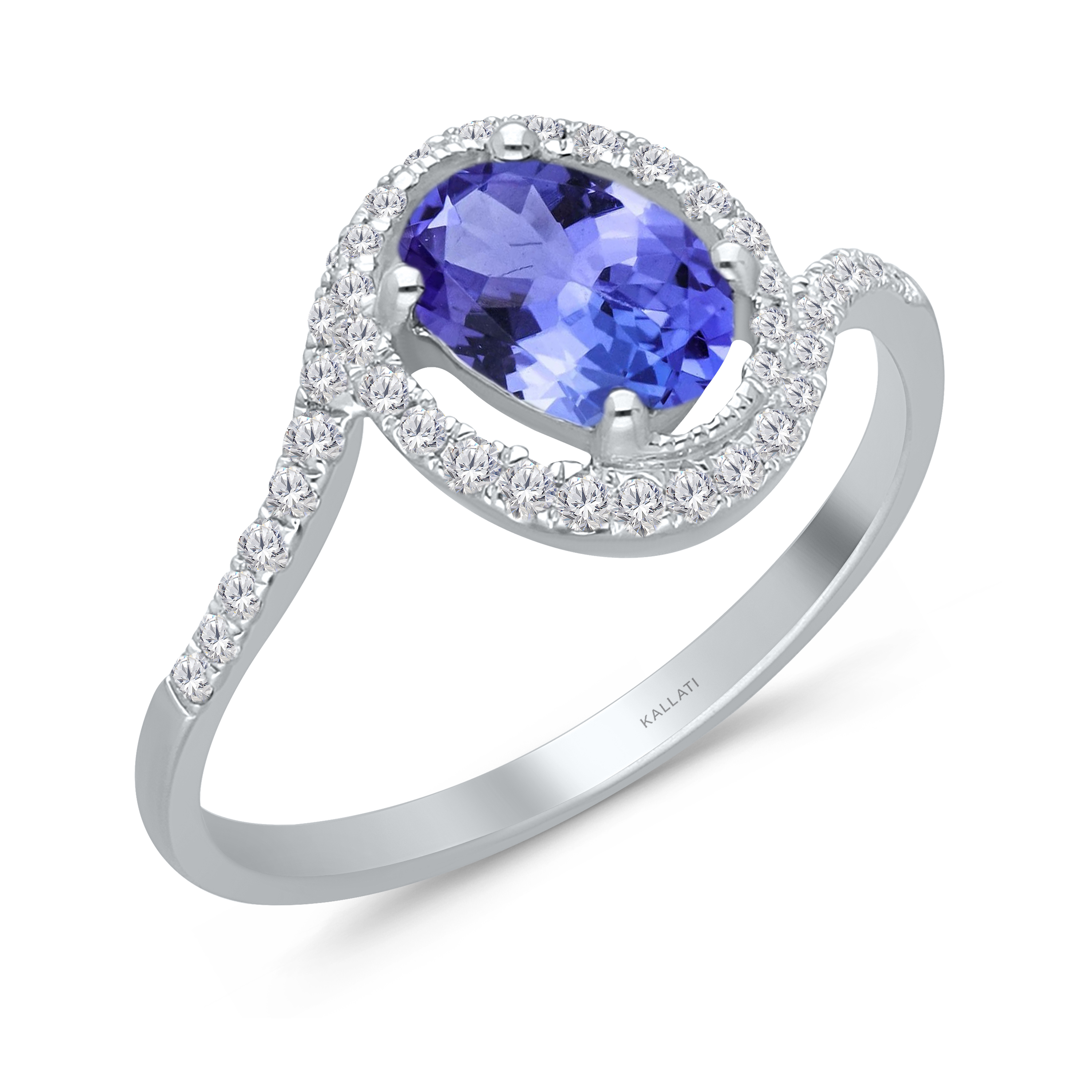 14K WHITE GOLD OVAL TANZANITE DIAMOND FASHION RING