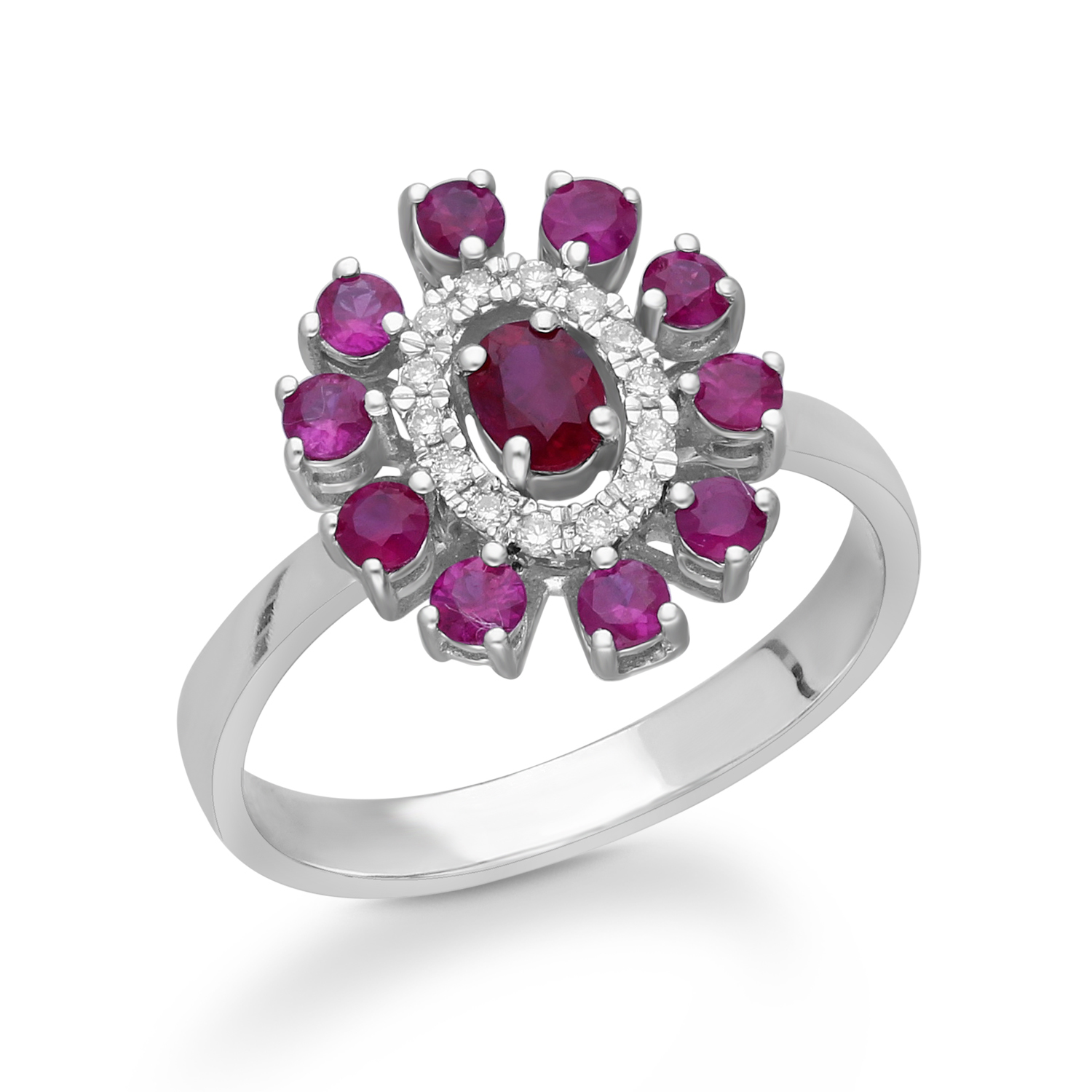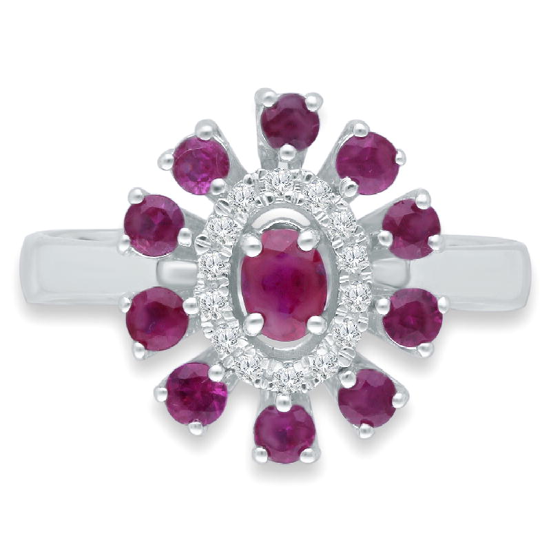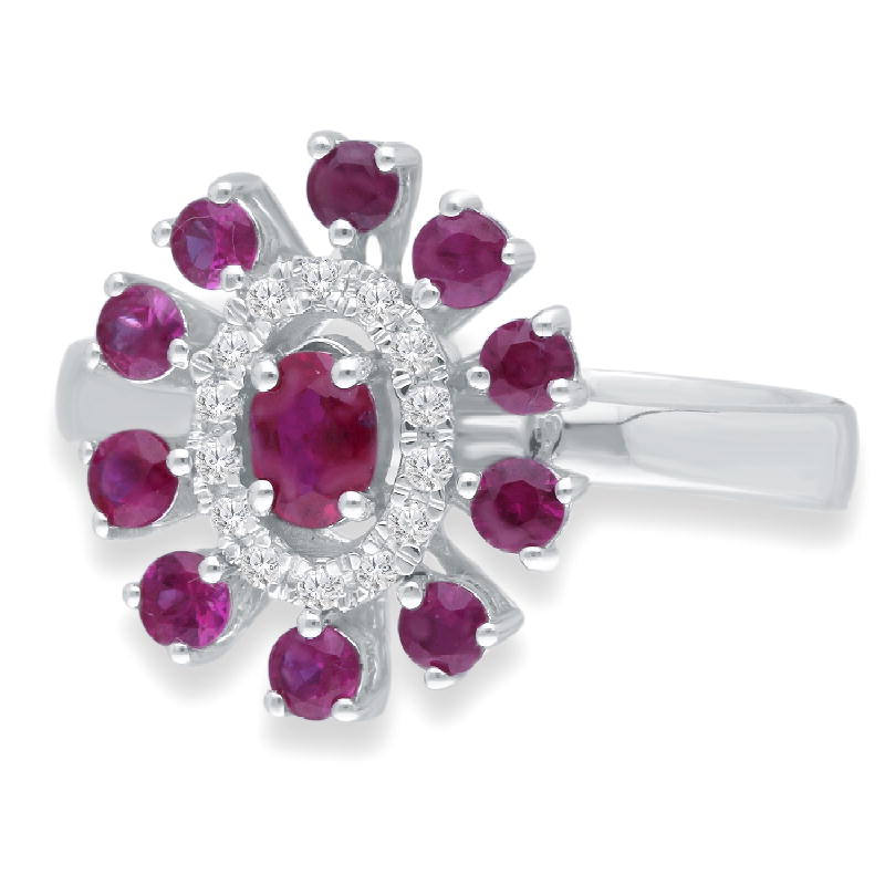 14K WHITE GOLD RUBY & WHITE DIAMOND FASH
