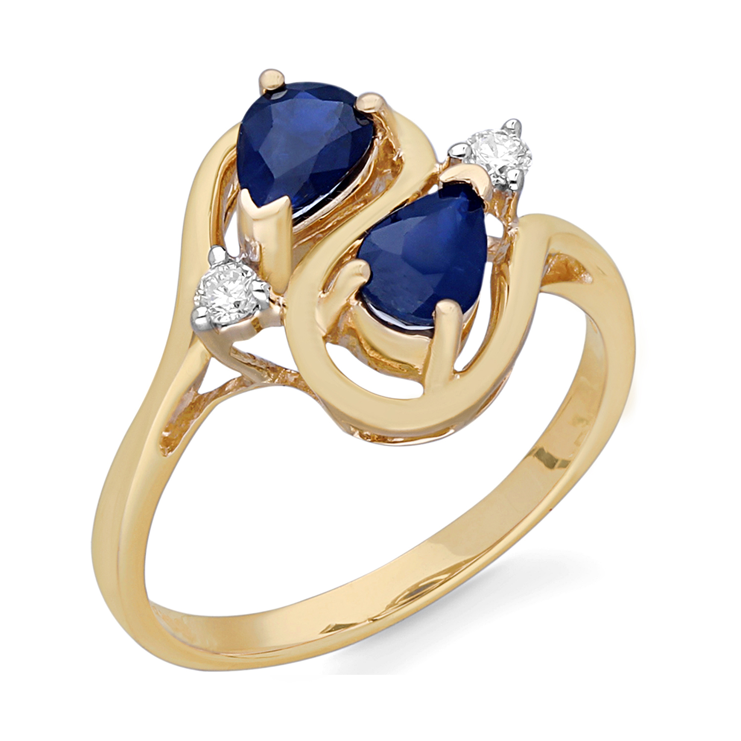 14K YELLOW GOLD SAPPHIRE &WHITE DIAMOND FASHION RING