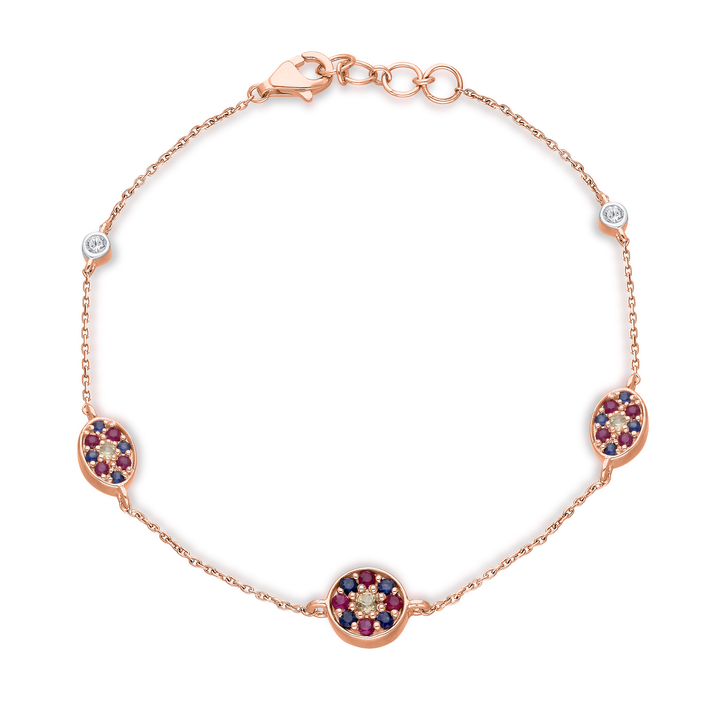 14K ROSE GOLD &MULTI SAPPHIRE WITH WHITE DIAMOND FASHION RING