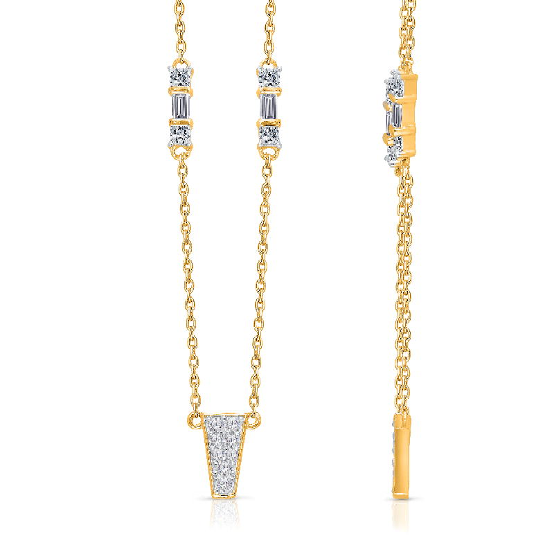 14K YELLOW GOLD PRINCESS& BAGUETTE WITH WHITE DIAMOND FASHION NECKLACE