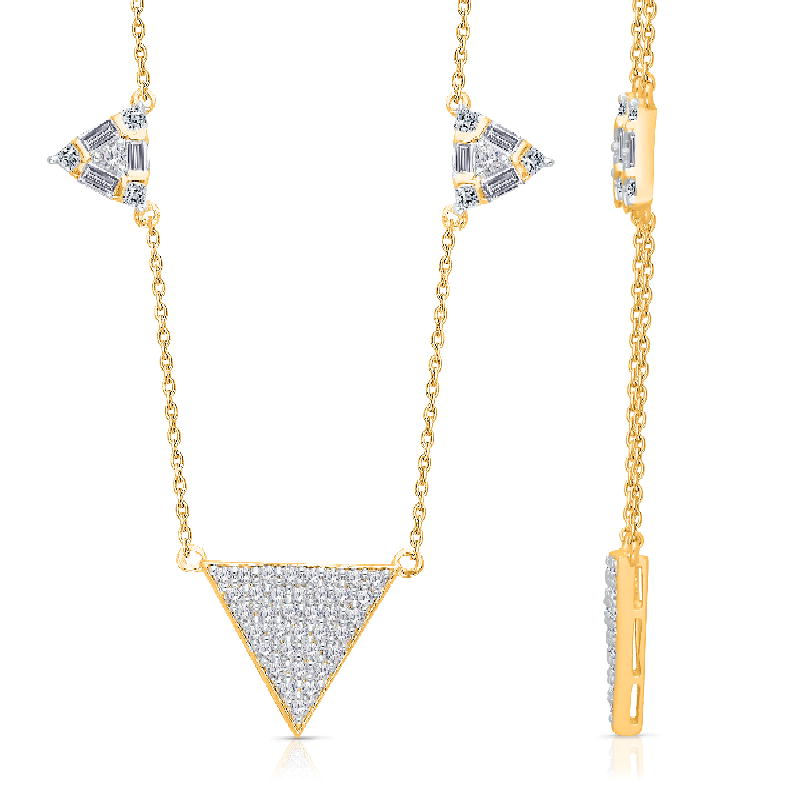 14K YELLOW GOLD PRINCESS& BAGUETTE WITH WHITE DIAMOND FASHION NECKLACE