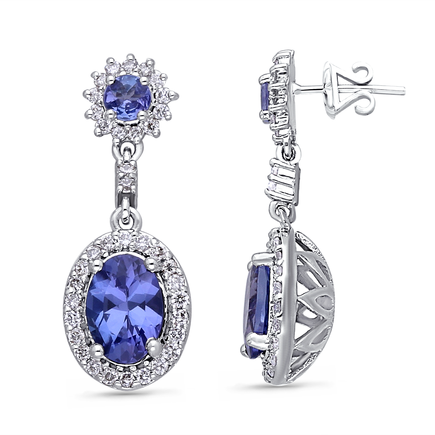 14K WHITE GOLD TANZANITE & WHITE DIAMOND