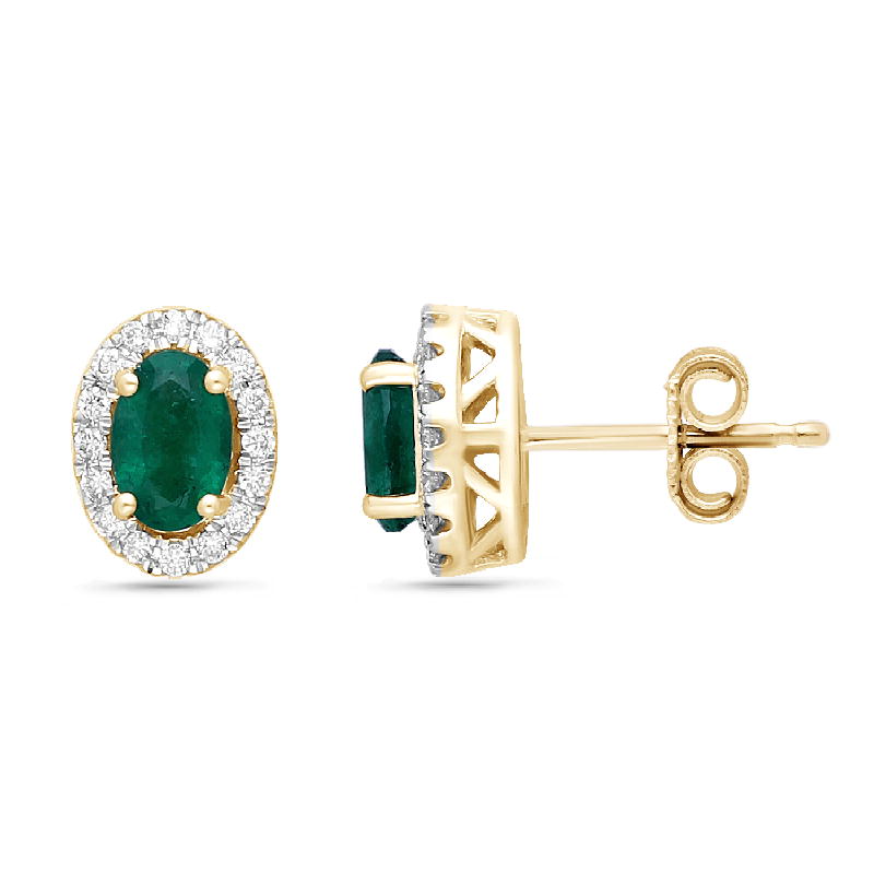 14K YELLOW GOLD EMERALD DIA FASHION EARR