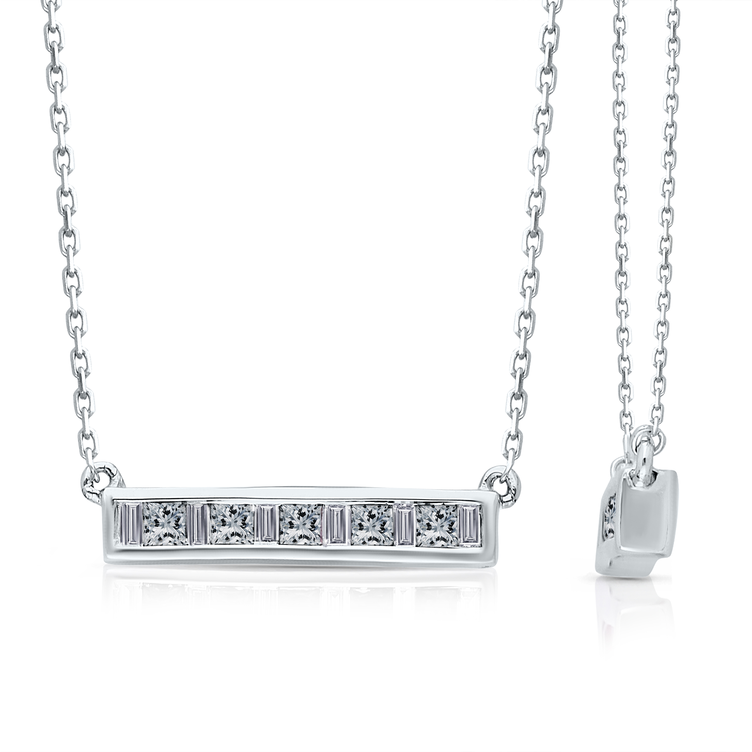 14K WHITE GOLD PRINCESS & BAGUETTE PEND
