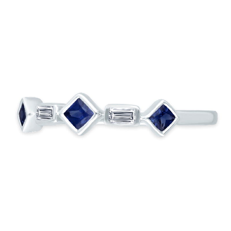 14K WHITE GOLD SAPPHIRE & WHITE DIAMOND