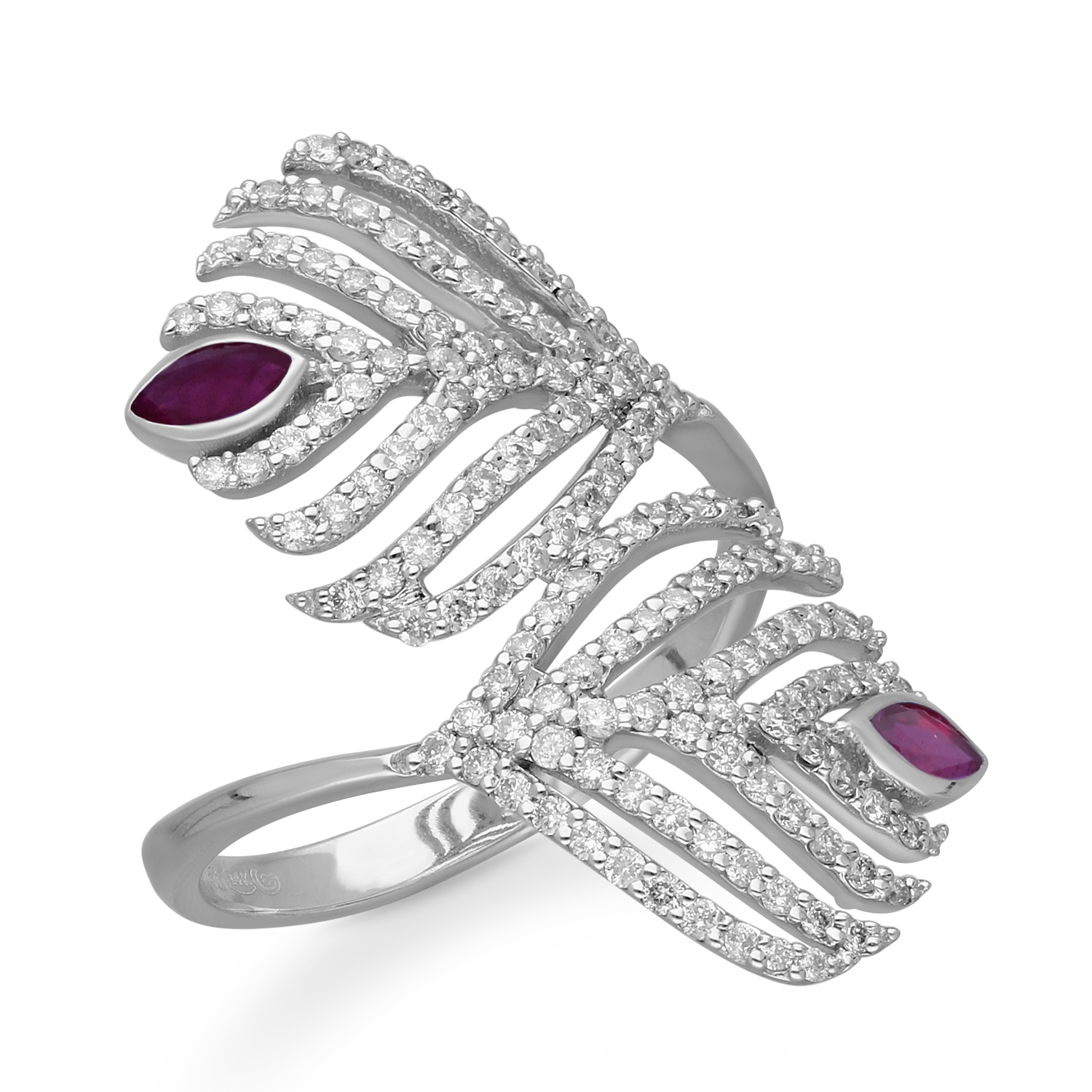 14K WHITE GOLD RUBY & WHITE DIAMOND