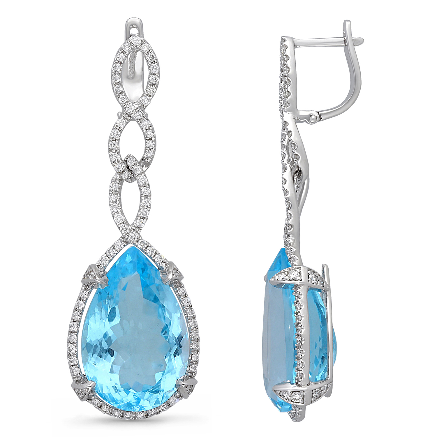 14K WHITE GOLD BLUE TOPAZ & WHITE DIAMO