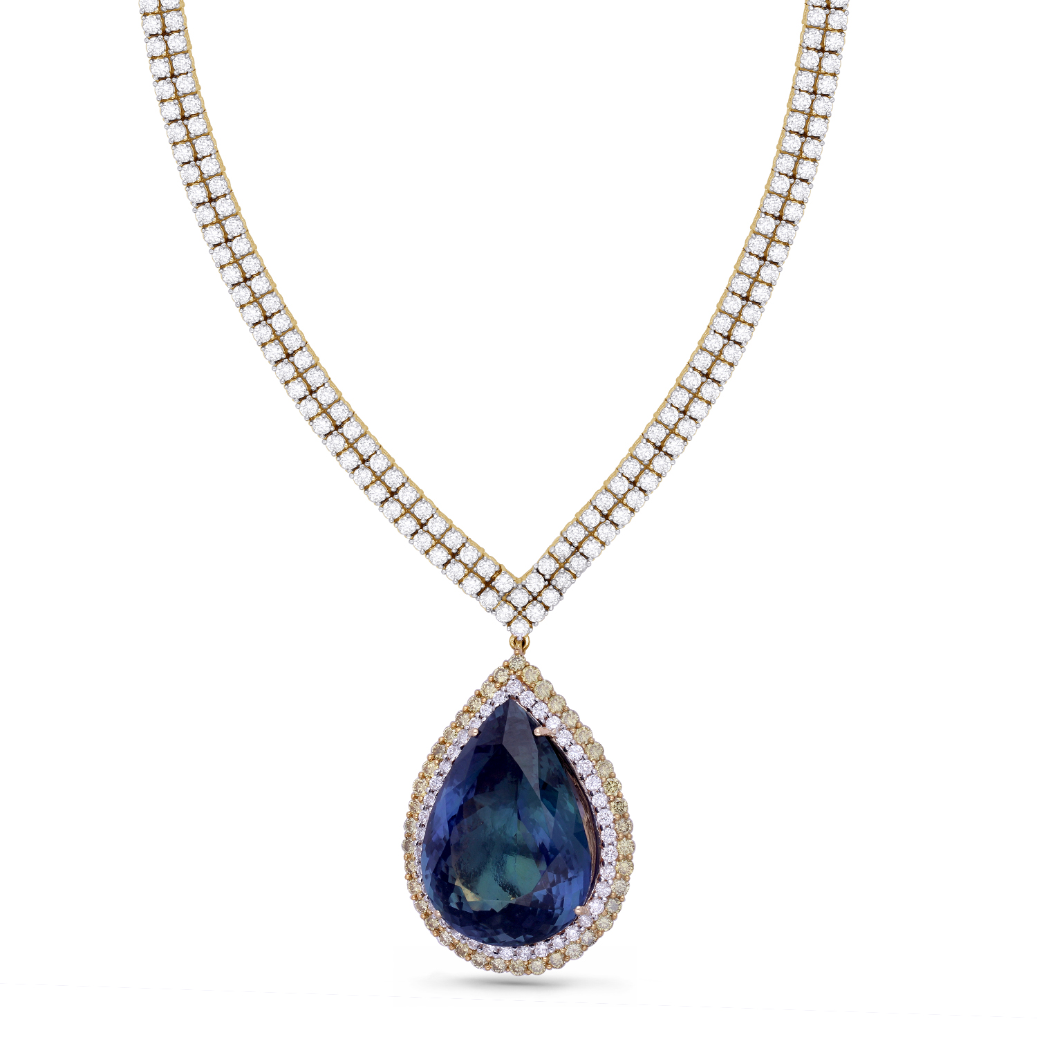14K YELLOW GOLD NON HEAT TANZANITE & WHI