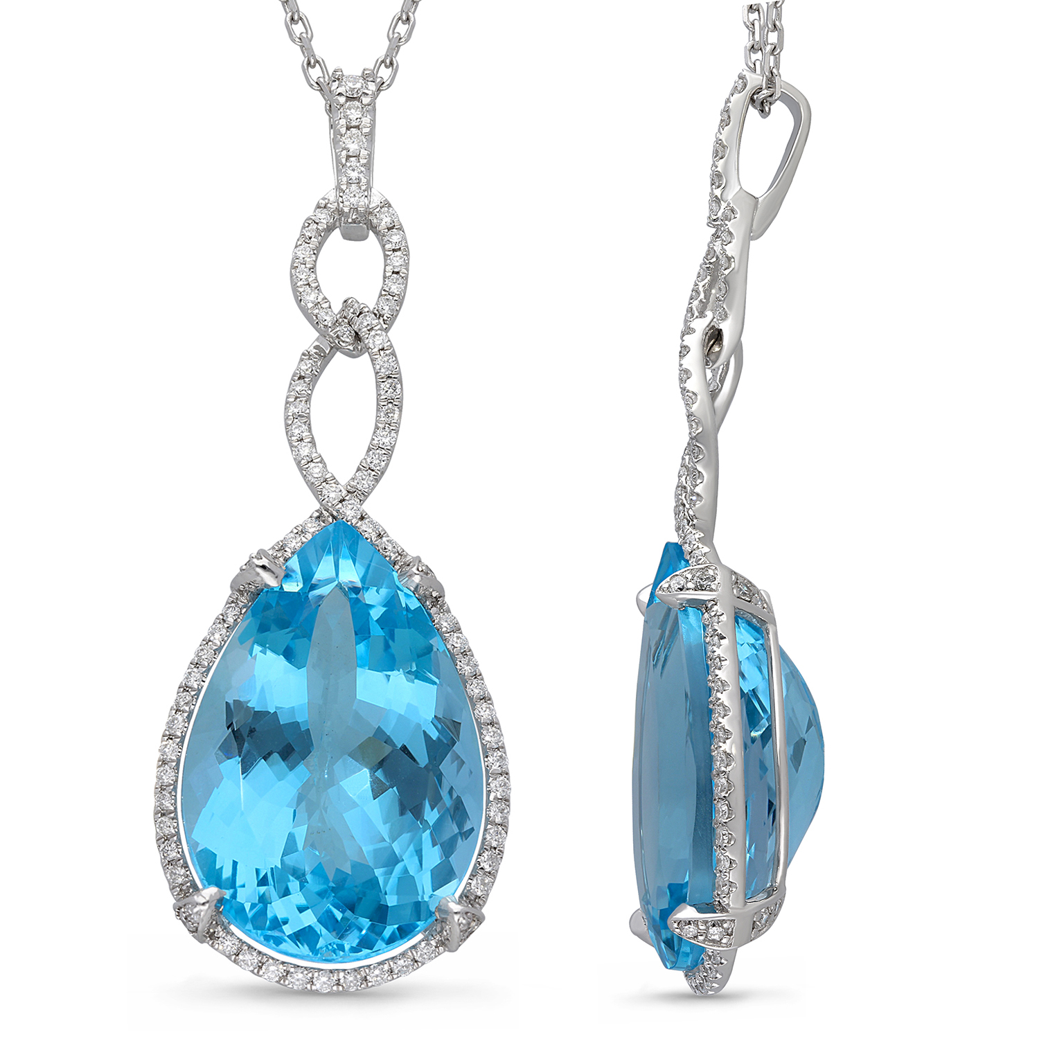 14K WHITE GOLD BLUE TOPAZ & WHITE DIAMO
