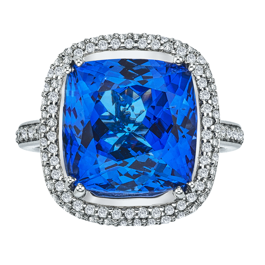 14K WHITE GOLD TANZANITE WITH WHITE DIAMOND FASHION RING