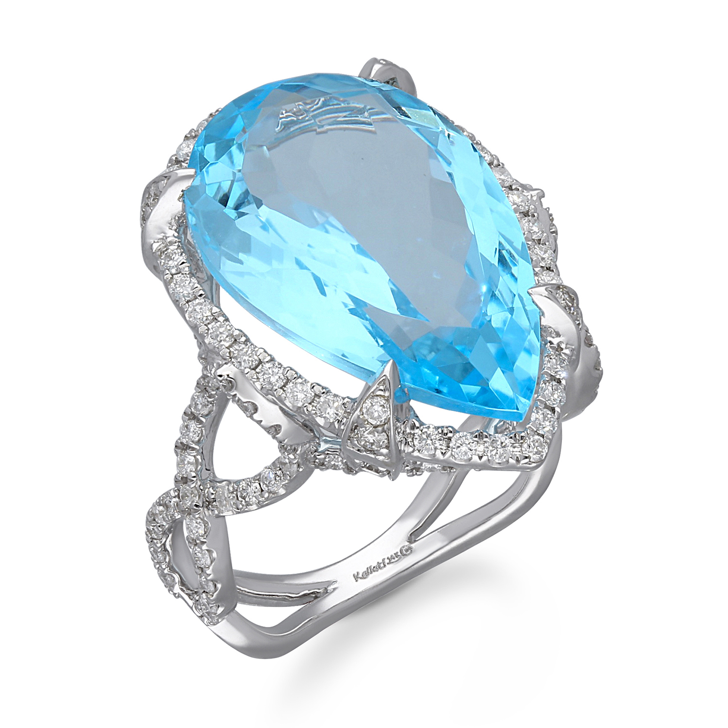 14K WHITE GOLD BLUE TOPAZ & WHITE DIAMO