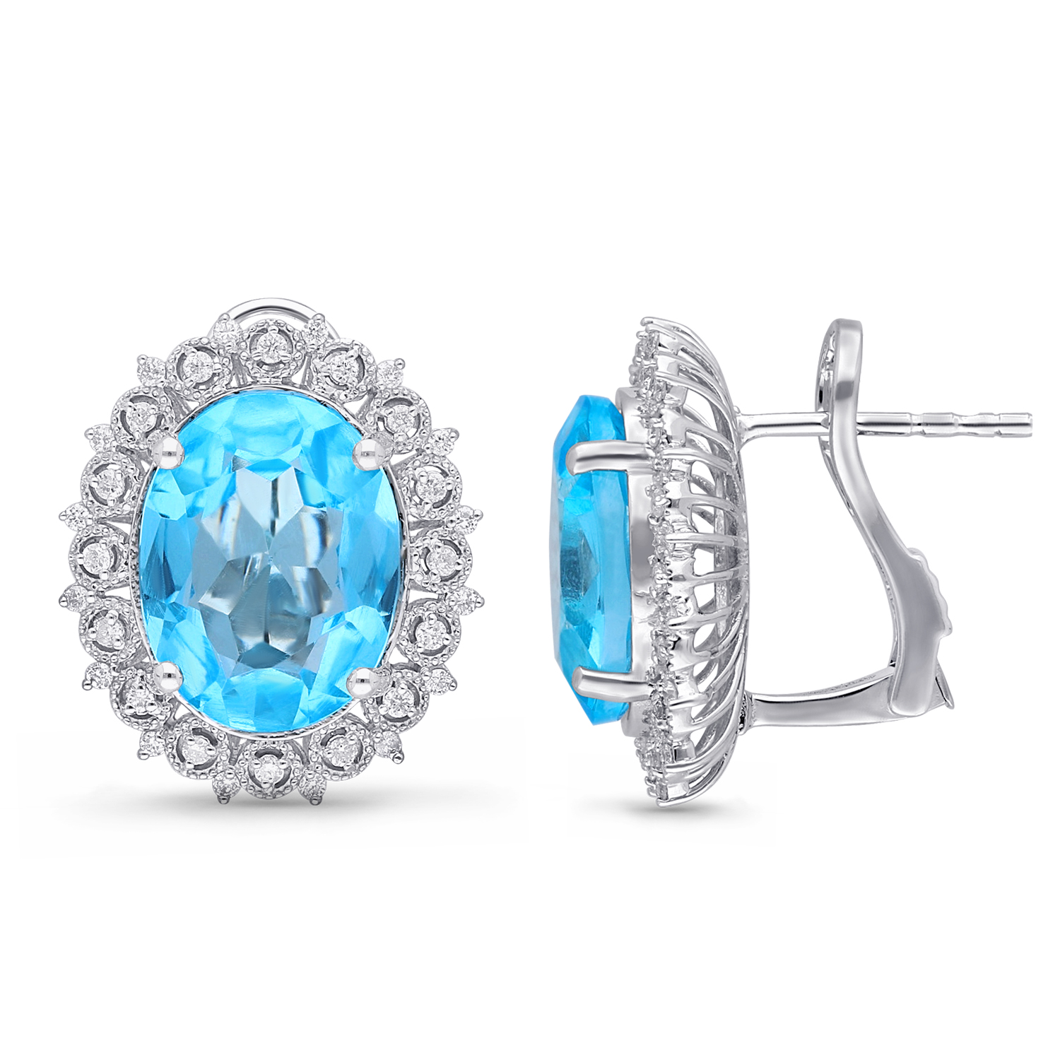 14K WHITE GOLD BLUE TOPAZ & WHITE DIAMON