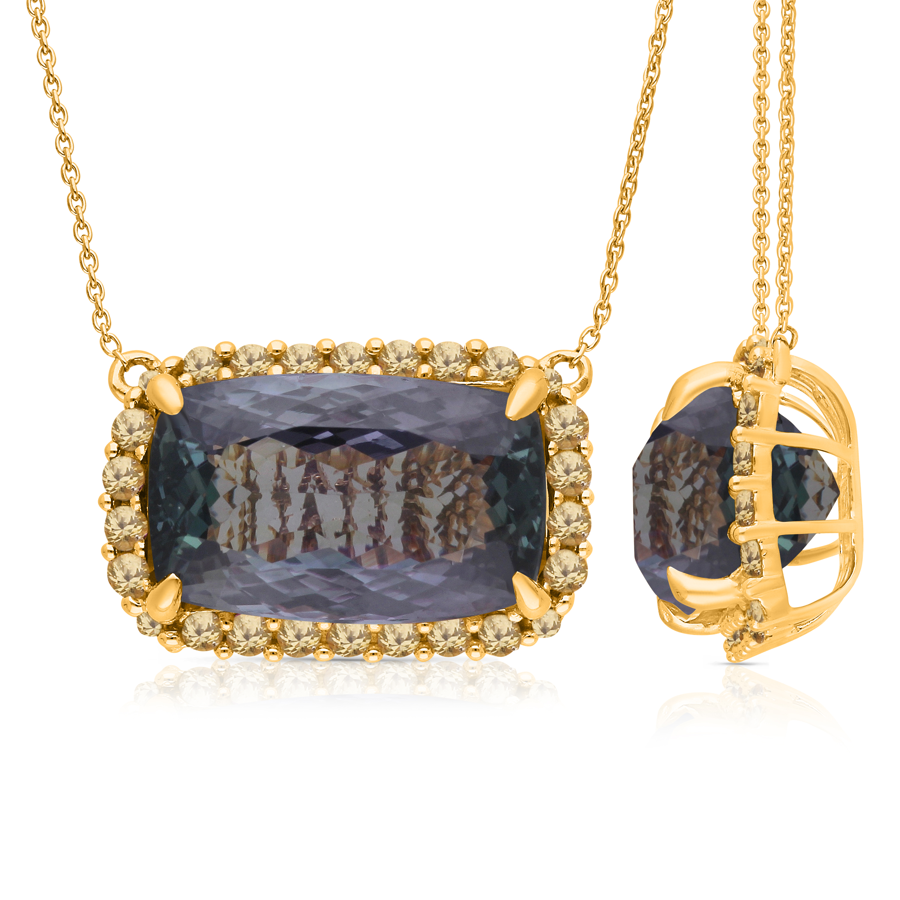 14K YELLOW GOLD NON HEAT TANZANITE & WHITE DIAMOND FASHION NECKLACE