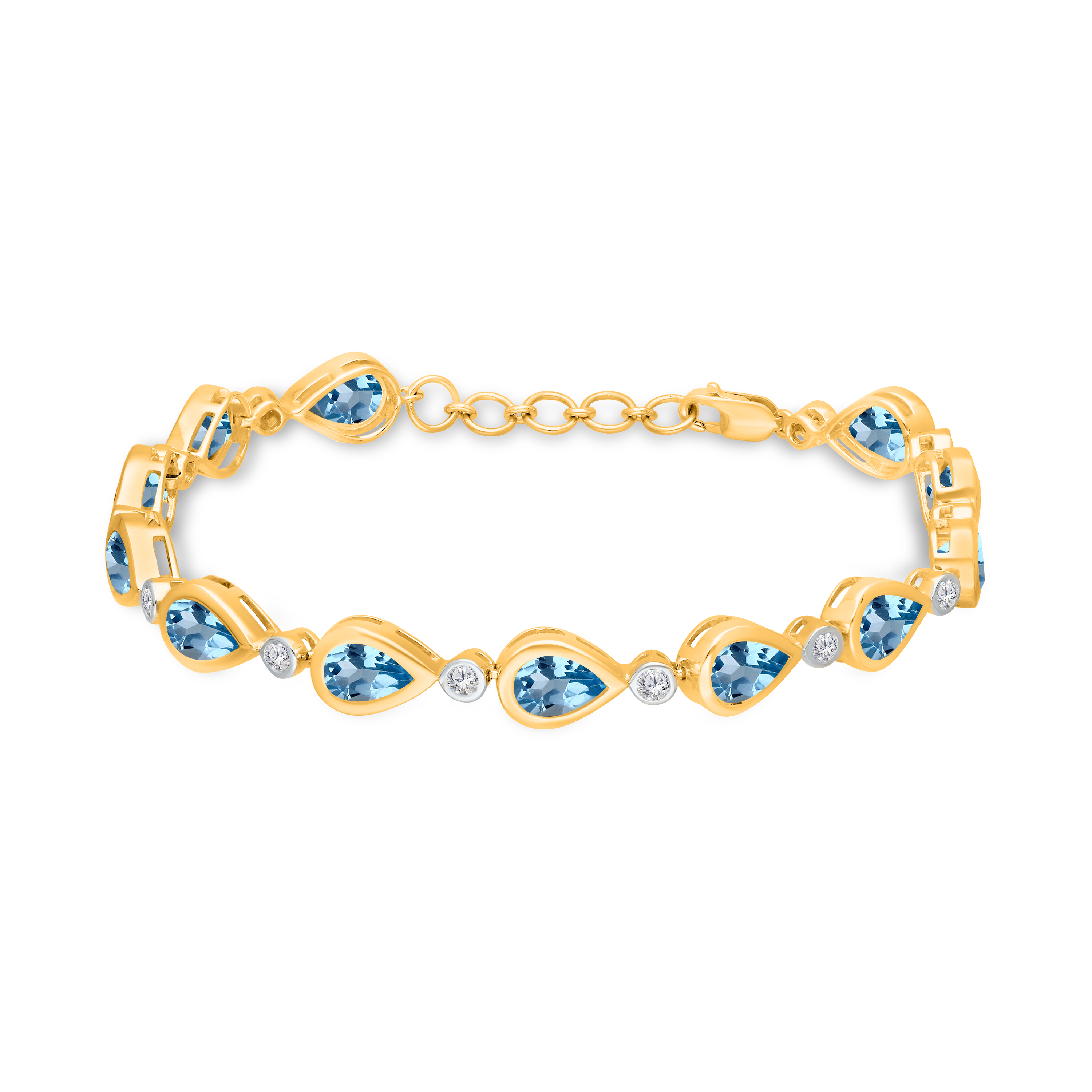 14K YELLOW&WHITE GOLD BLUE TOPAZ & WHITE DIAMOND FASHION BRACELET