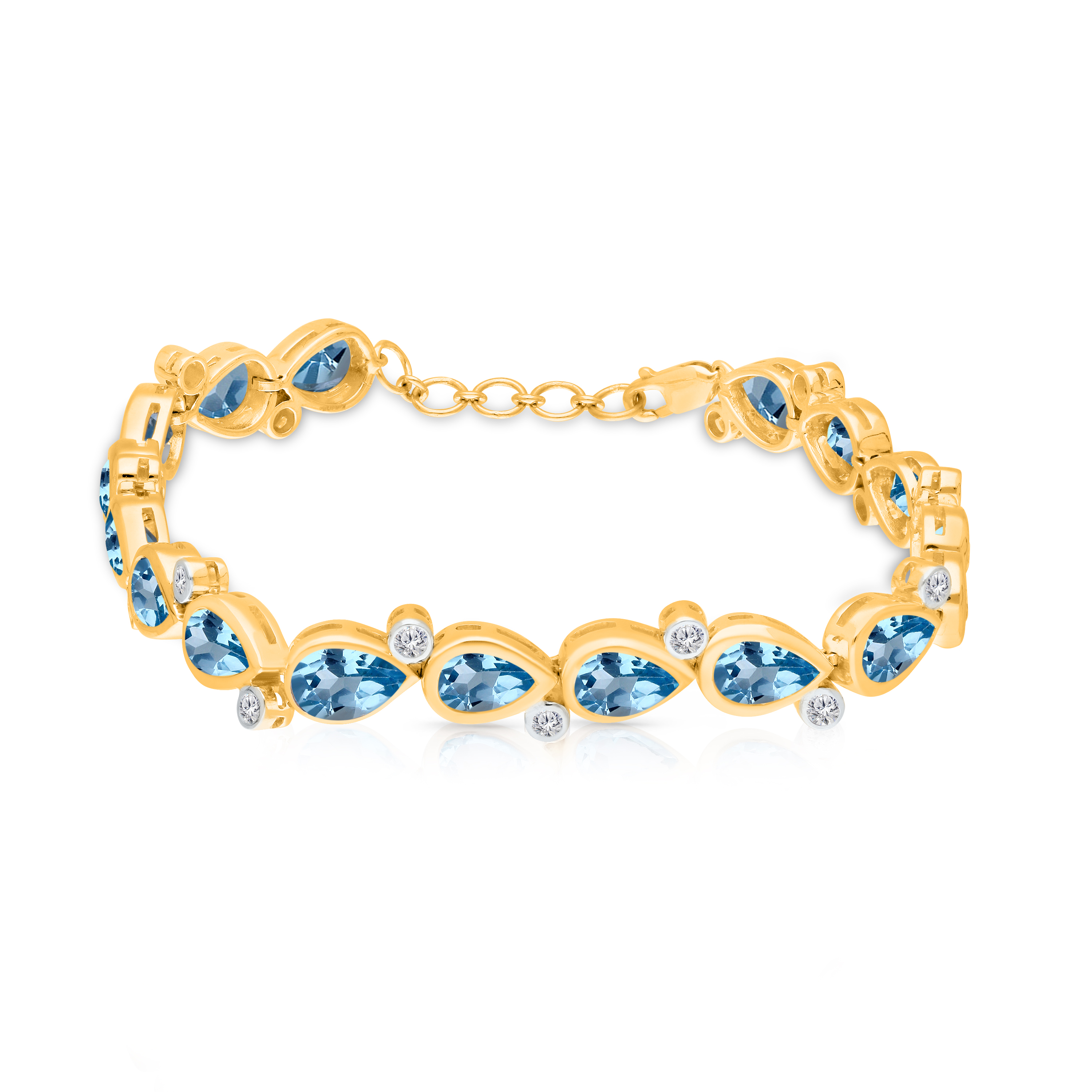 14K YELLOW GOLD BLUE TOPAZ & WHITE DIAMOND FASHION BRACELET