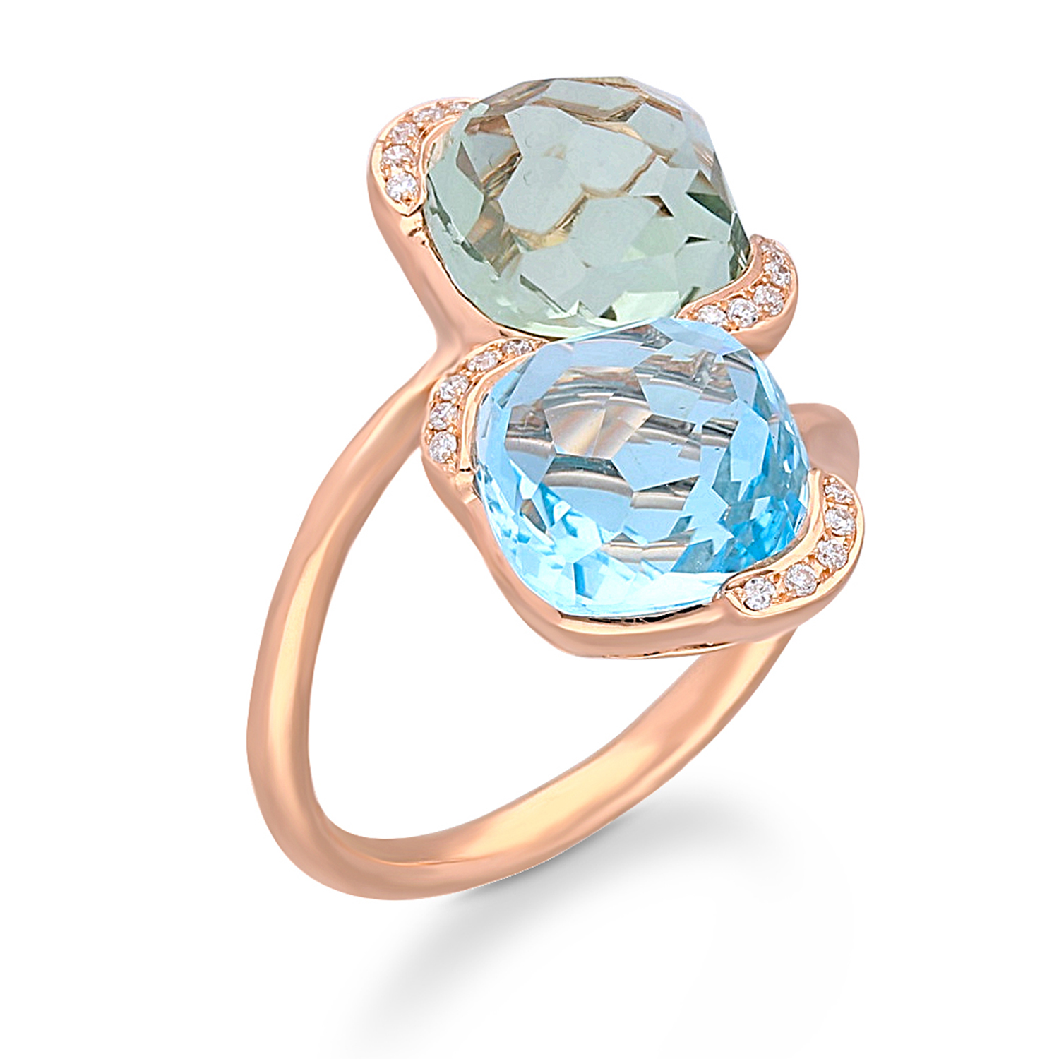 14K ROSE GOLD SI BLUE TOPAZ & GREEN AMET